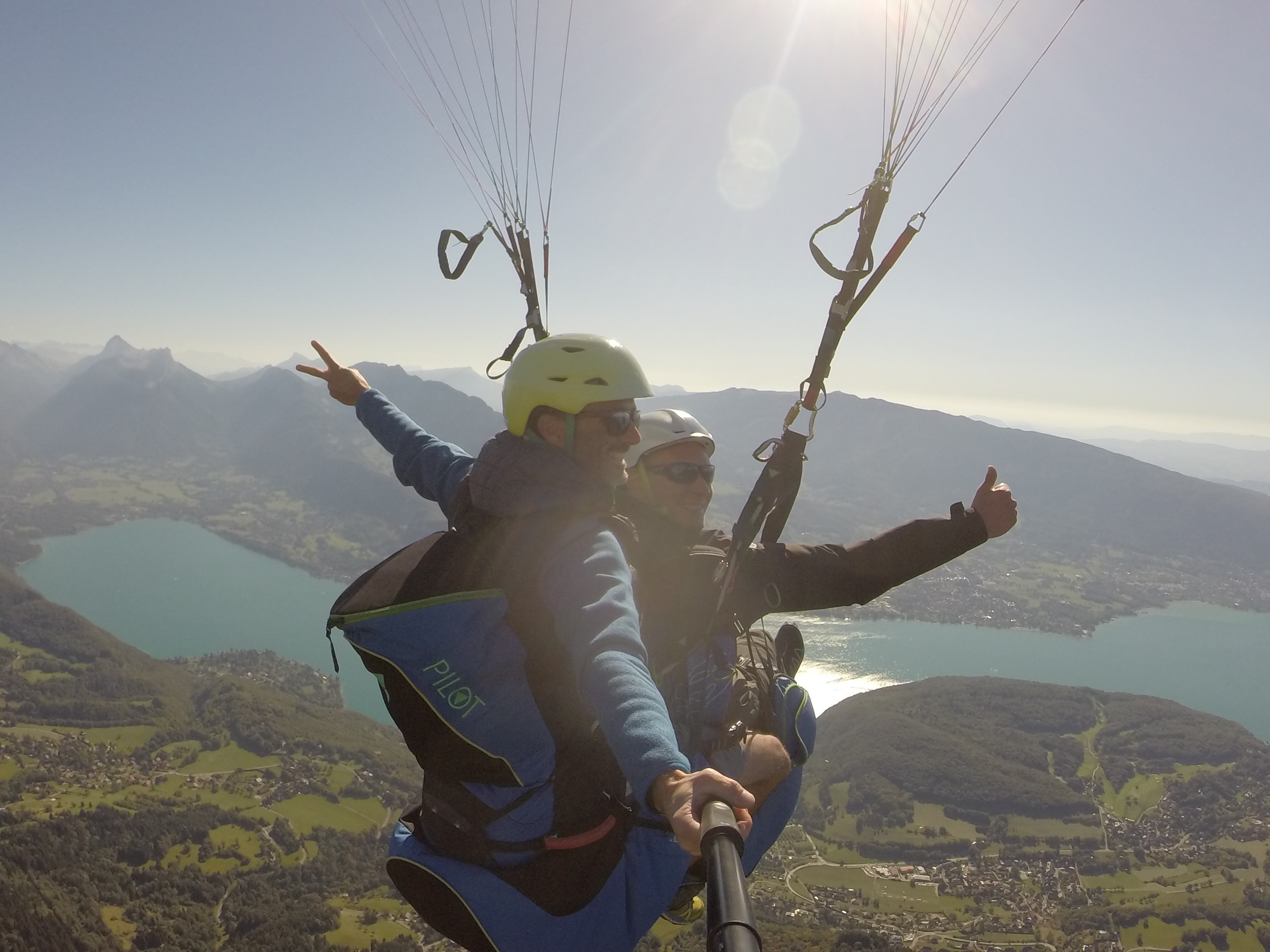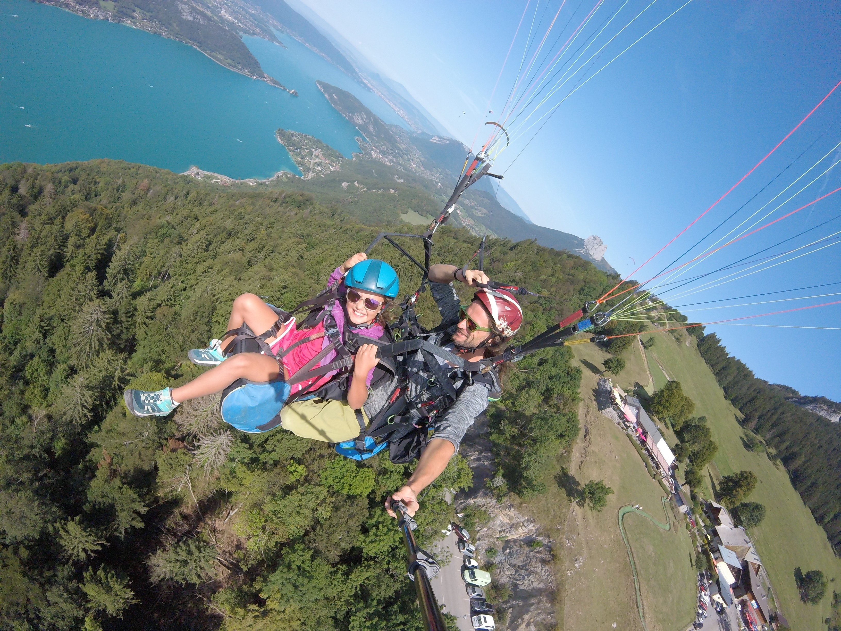 Premier contact avec l'air sur un vol de 800 mètres de dénivelé en conditions calmes où vous survolez le lac d'Annecy.