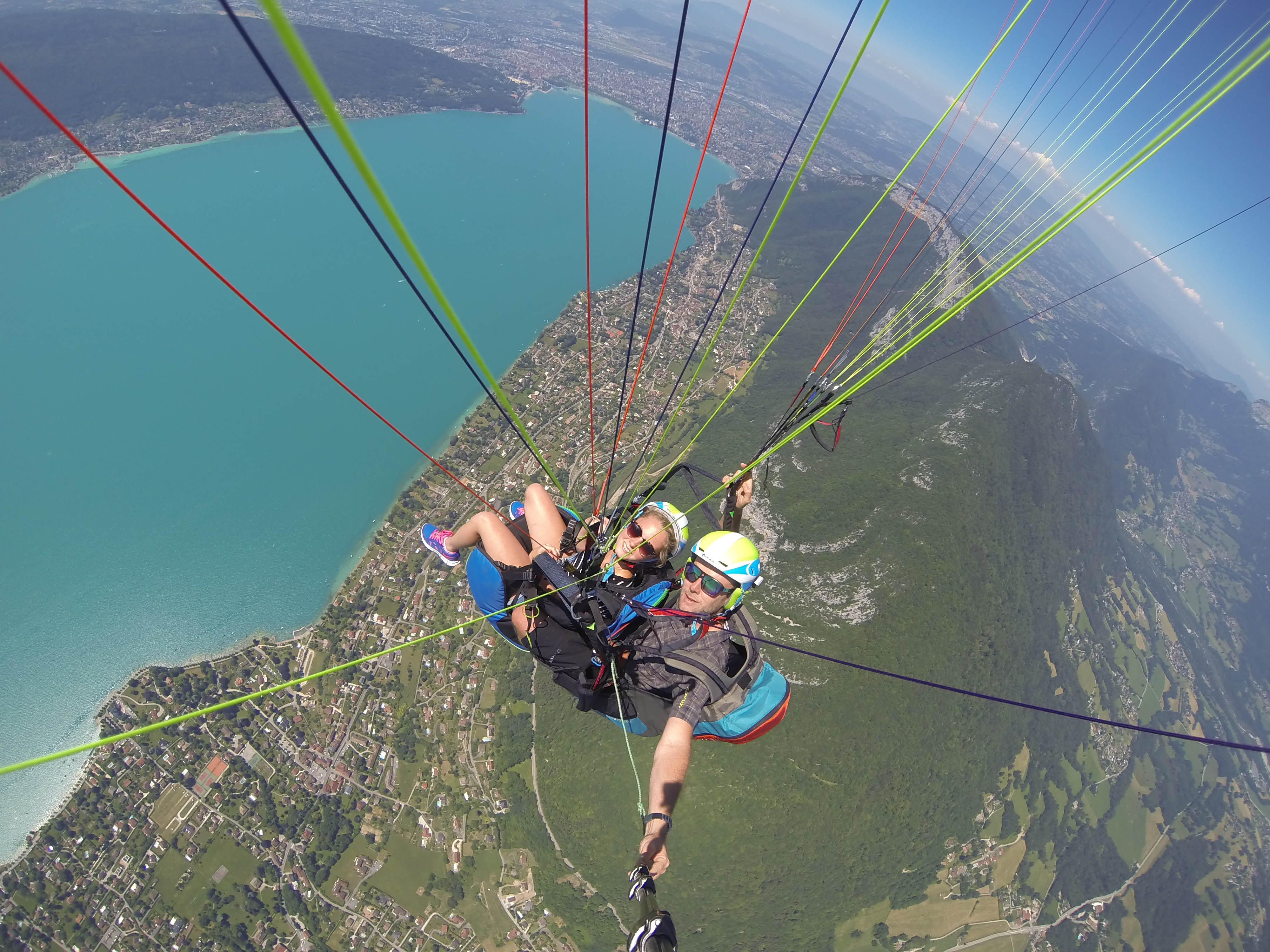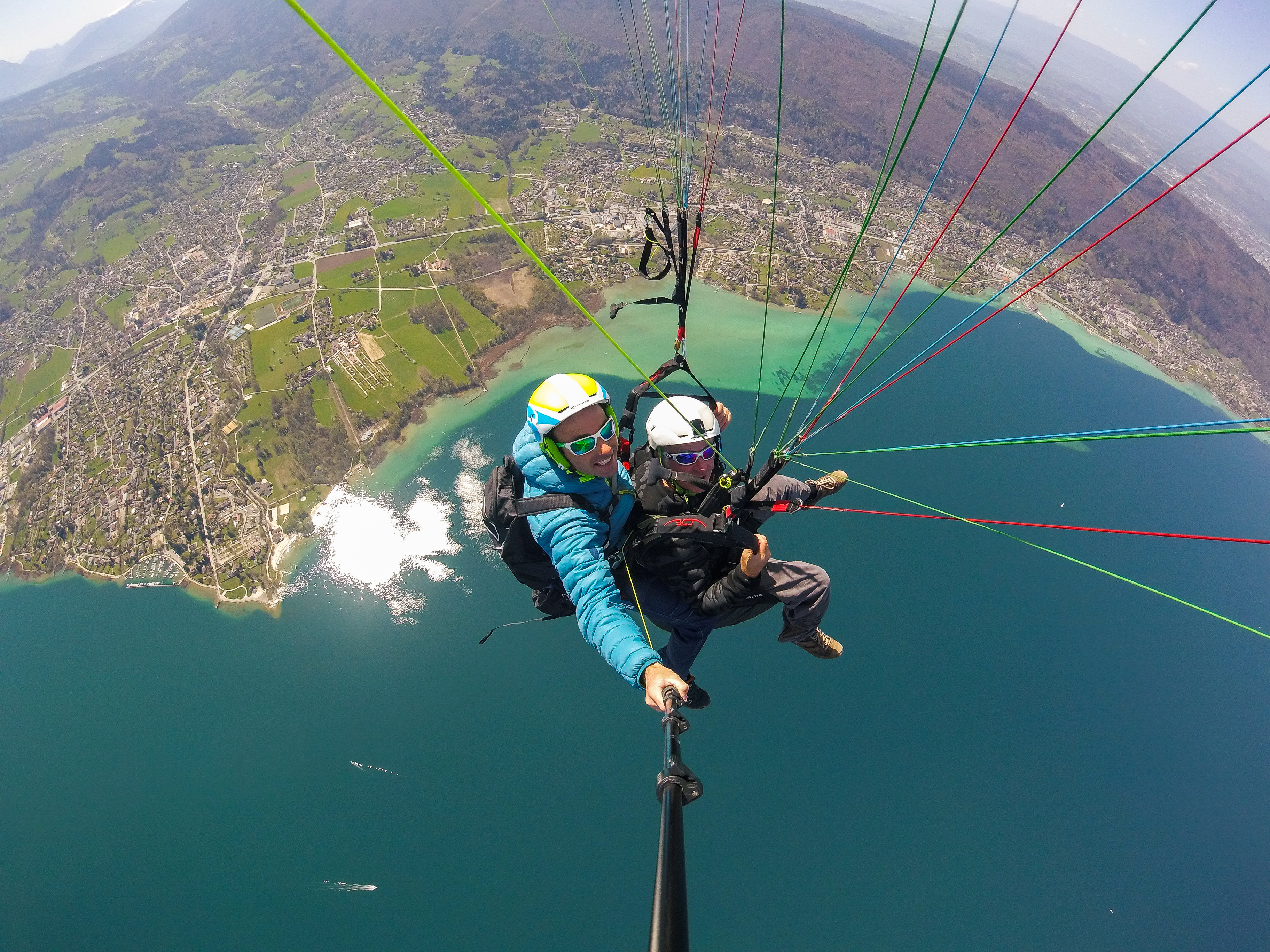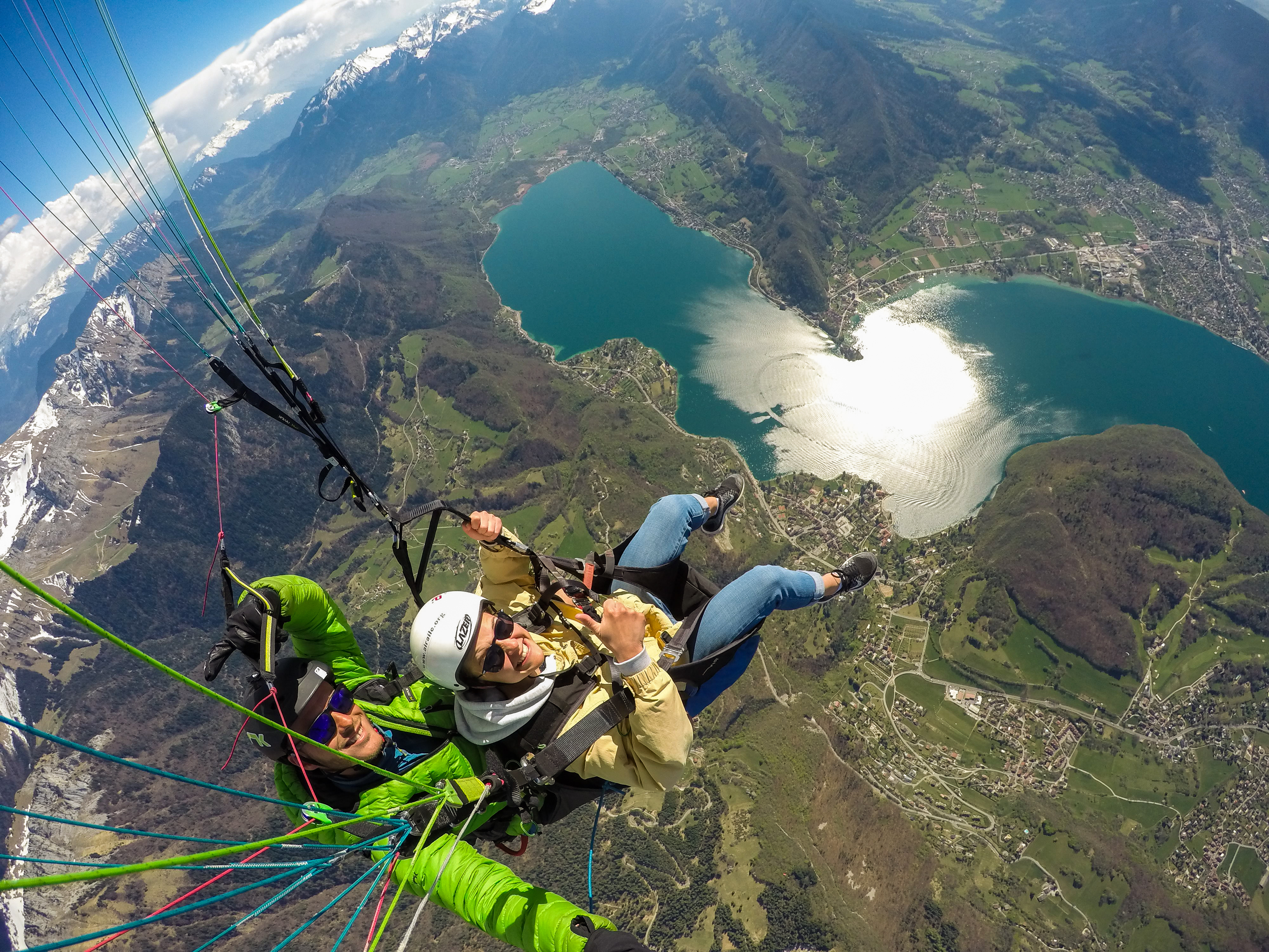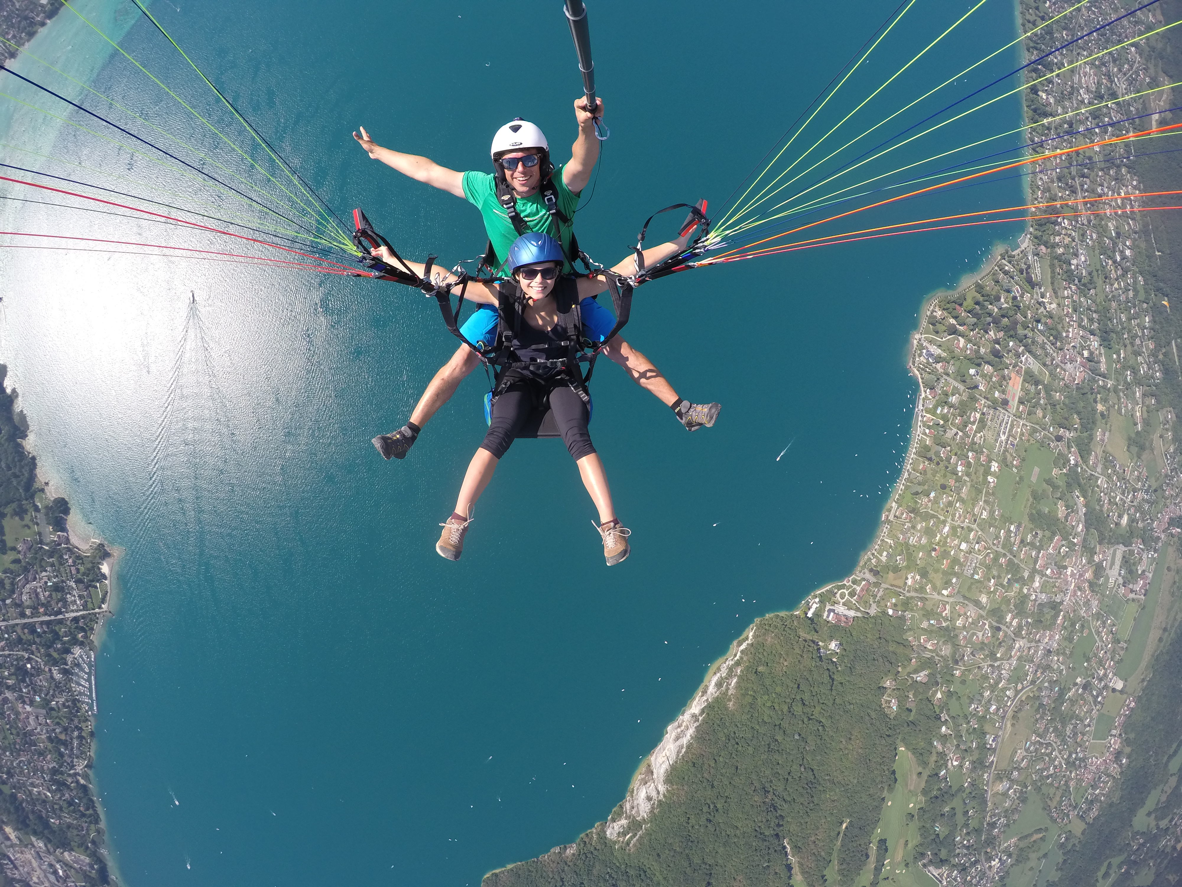 Premier contact avec l'air sur un vol de 800 mètres de dénivelé en conditions calmes où vous survolez le lac d'Annecy.