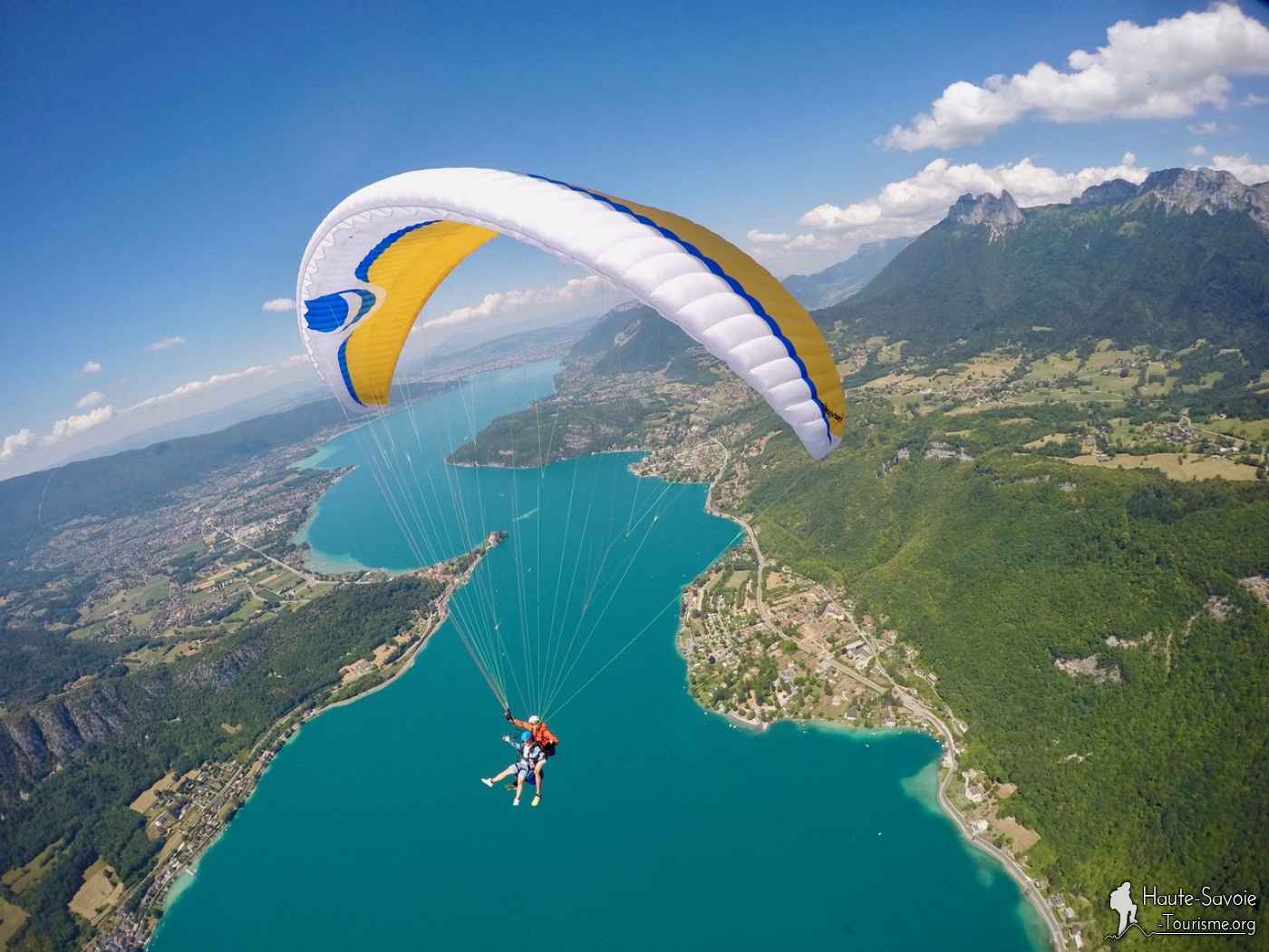 En compagnie de moniteurs diplômés, vous pourrez profiter de baptêmes biplaces allant de 15 minutes à plus d'une heure. Une excellente manière de découvrir cette activité sportive très prisée en Haute-Savoie. Accessible dès 5 ans, il vous suffit de quelques minutes pour vous envoler dans un voyage dont vous vous rappellerez. Voler au dessus des montagnes et du lac d'Annecy est une excepérience inoubliable.