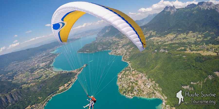 40 minutes de vol en biplace, sous vos pieds le magnifique lac d'Annecy, à portée de main la chaîne des Aravis.
