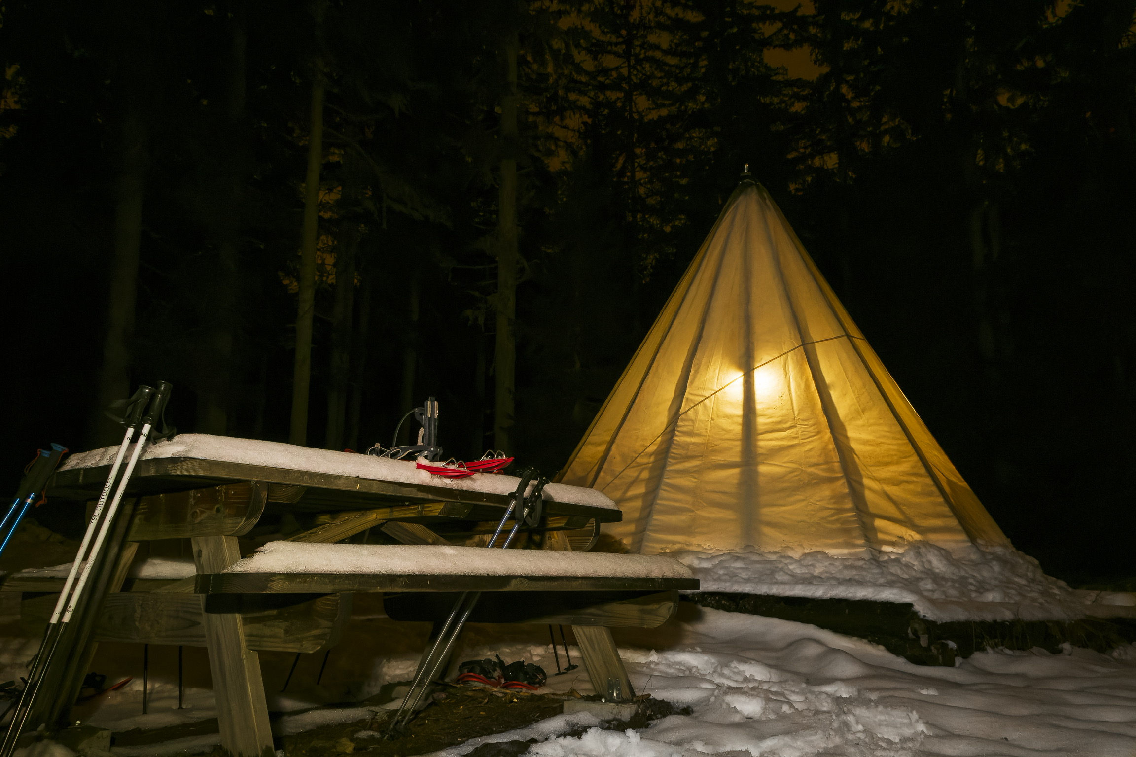 Après l'effort, le réconfort ! Quoi de mieux qu'un bon repas au chaud sous un tipi perdu au milieu d'une forêt, dans le silence absolu après une randonnée sous les étoiles ?