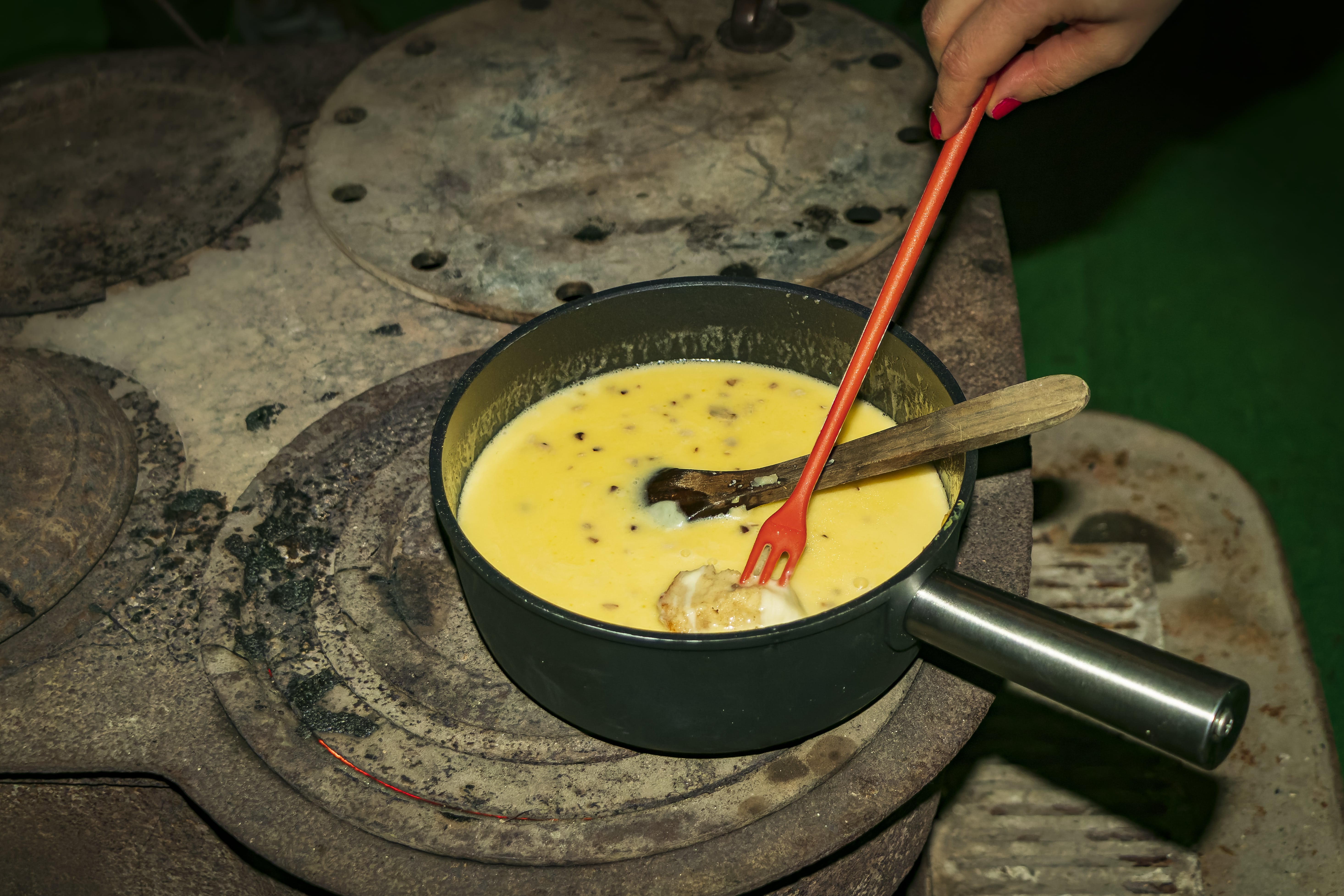 Dégustez une délicieuse fondue savoyarde accompagnée de produits locaux et de vin chaud / jus de pomme chaud avant de redescendre au parking.