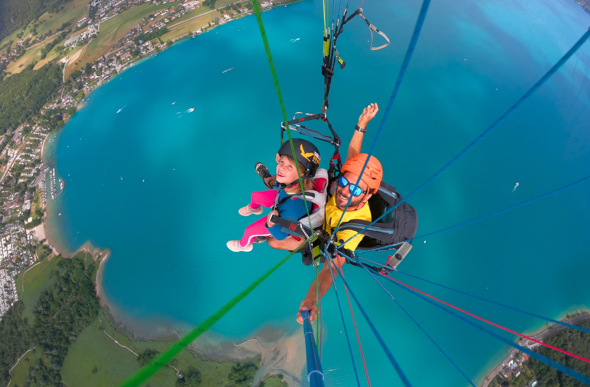 Quelque soit votre niveau, nous vous emmenons pour un baptême de l'air au-dessus du majestueux lac d'Annecy.