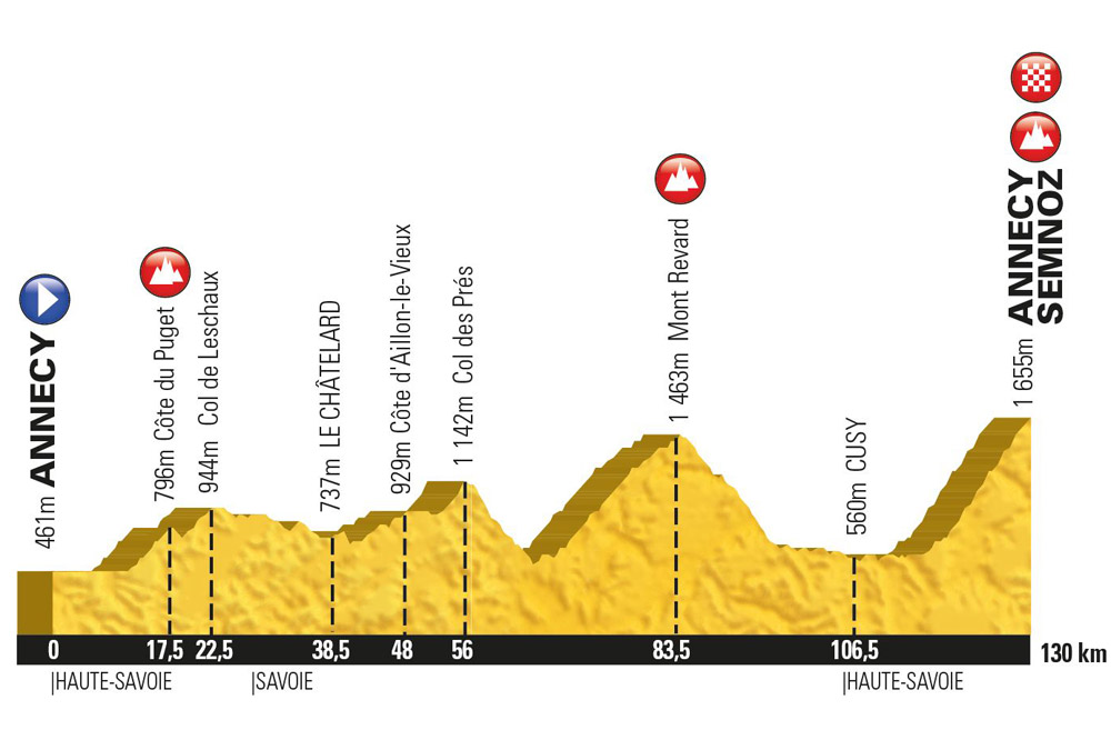 Un tracé unique au cœur du Parc naturel régional des Bauges, avec une ascension finale très difficile vers le Semnoz. Les chiffres de ce circuit parlent d’eux même : 125 km et 3500 m de dénivelé positif ! A réserver aux cyclistes aguerris !