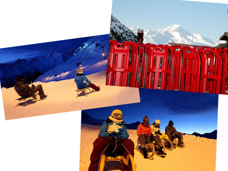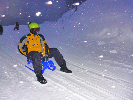 A la tombée de la nuit, quand les skieurs ont déserté les pistes, dévalez les pentes du Pleney équipé de luges et de lampes frontales. Commence alors une descente folle et vertigineuse à travers les 4 km de pistes boisées surplombant Morzine illuminé.