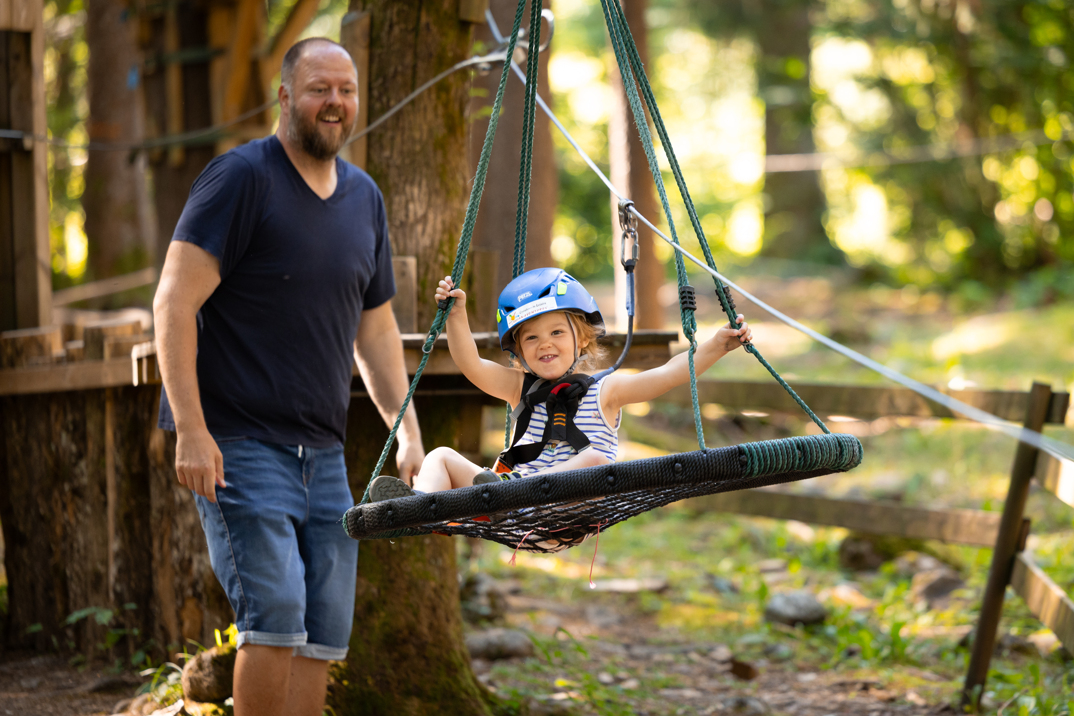 Parcours dans des filets mélangeant sensation, performance physique et amusement! SPIDER génère toujours de nombreux fous rires. En synergie avec la forêt, chacun retrouve son âme d’enfant, suspendu à plusieurs mètres au-dessus du sol.