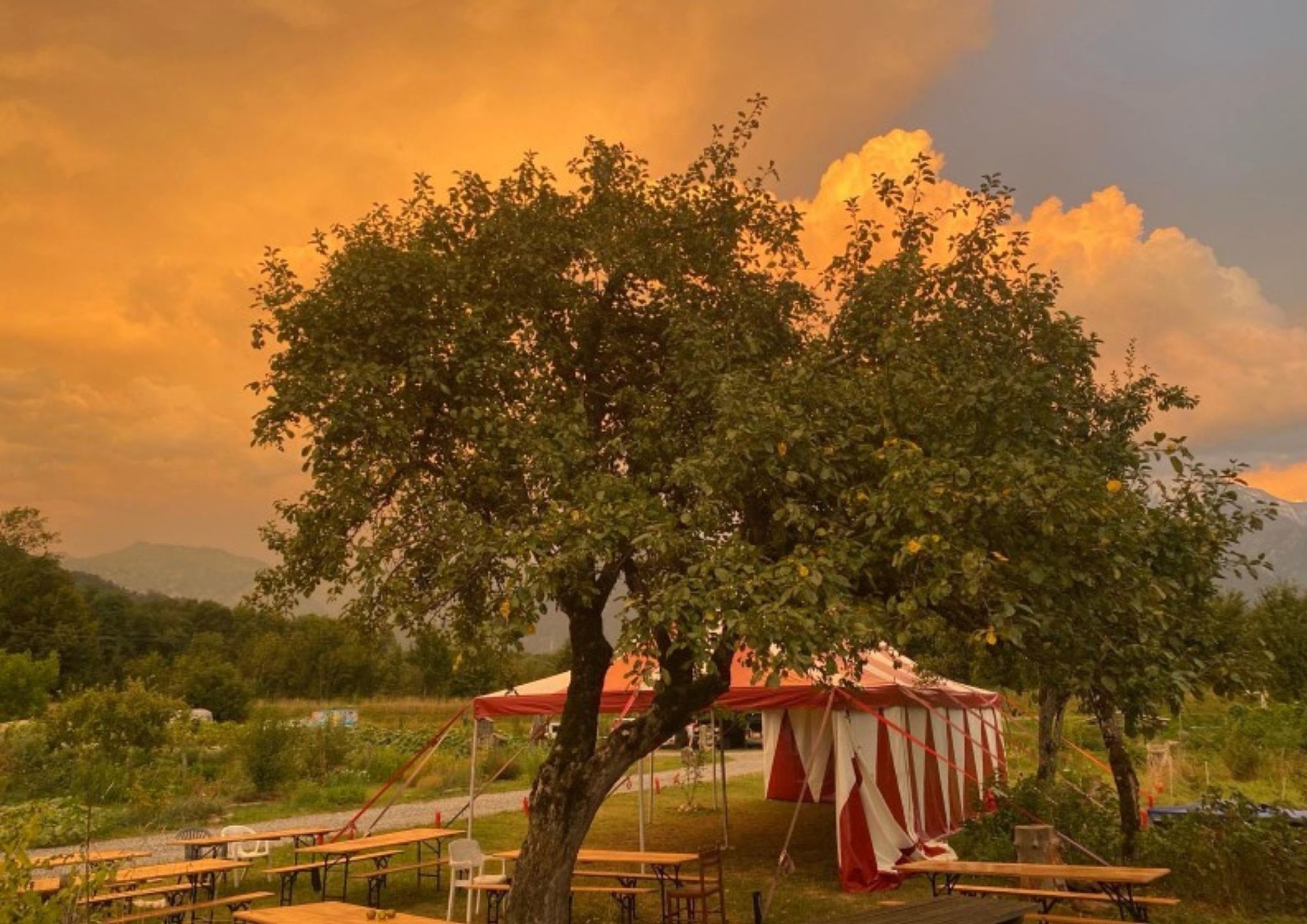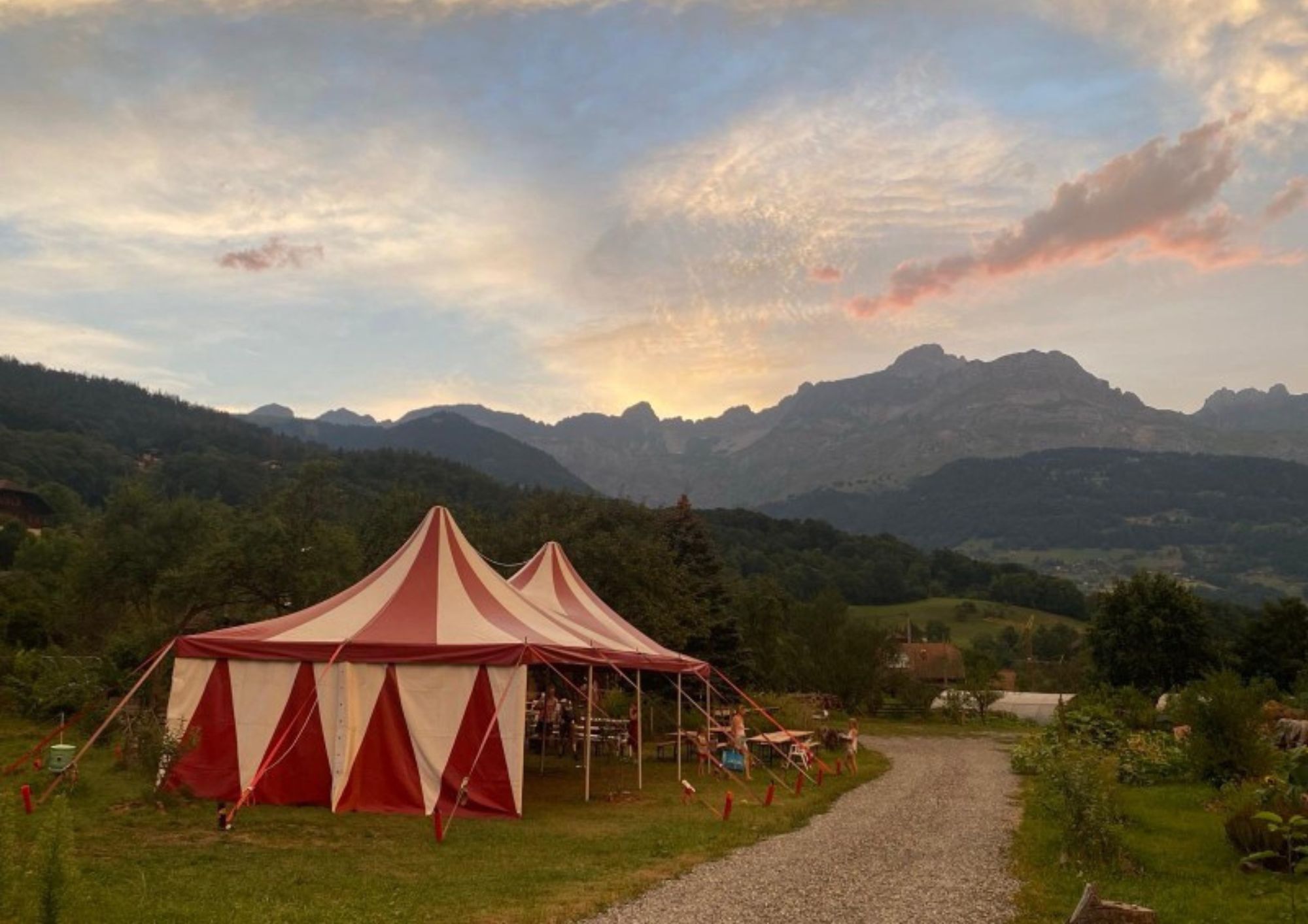 - L'oiseau de passage_Domancy Le chapiteau au soleil couchant Crédit photo : L'oiseau de passage_Domancy