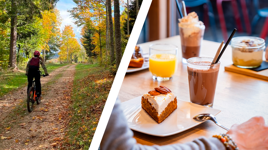 Baladez-vous à VTT électrique entre chemins et sentiers de la vallée de La Clusaz, puis savourez un goûter gourmand au Bistro Vélo.