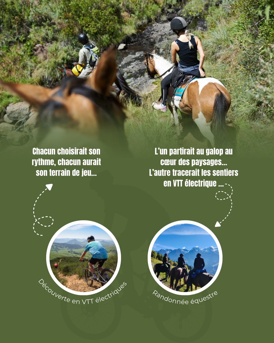 Si vous êtes déjà à l’aise en VTT ou à cheval, cette sortie vous permettra de profiter de sentiers plus engagés tout en gardant un rythme adapté à la famille.