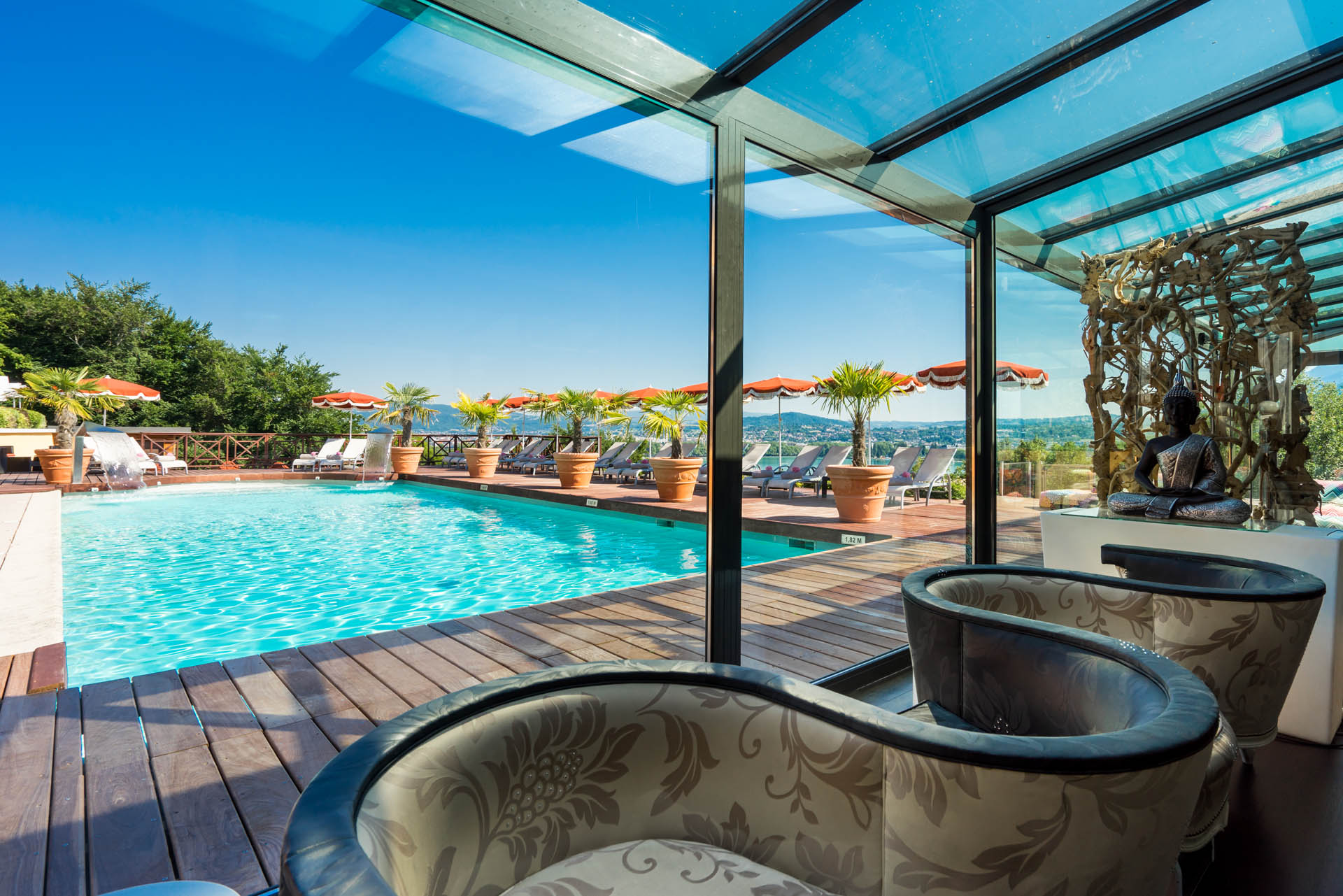 Un espace bien-être complète votre moment de détente avec un bassin de balnéothérapie maintenu à 30° toute l’année, offrant 11 cabines de massages, deux hammams et un sauna.