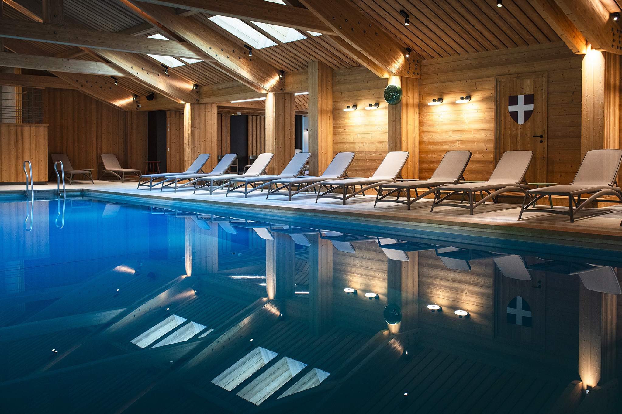 La grande piscine intérieure de 17 m x 8 m, bordée de larges baies vitrées et chauffée à 30°C, vous invite à la relaxation en toute saison. À ses côtés, un jacuzzi 8 places, un hammam, et un sauna avec vue panoramique sur le village de La Clusaz complètent cette expérience sensorielle. Une façon unique de se délasser tout en admirant les toits enneigés l’hiver, ou les alpages verdoyants l’été.