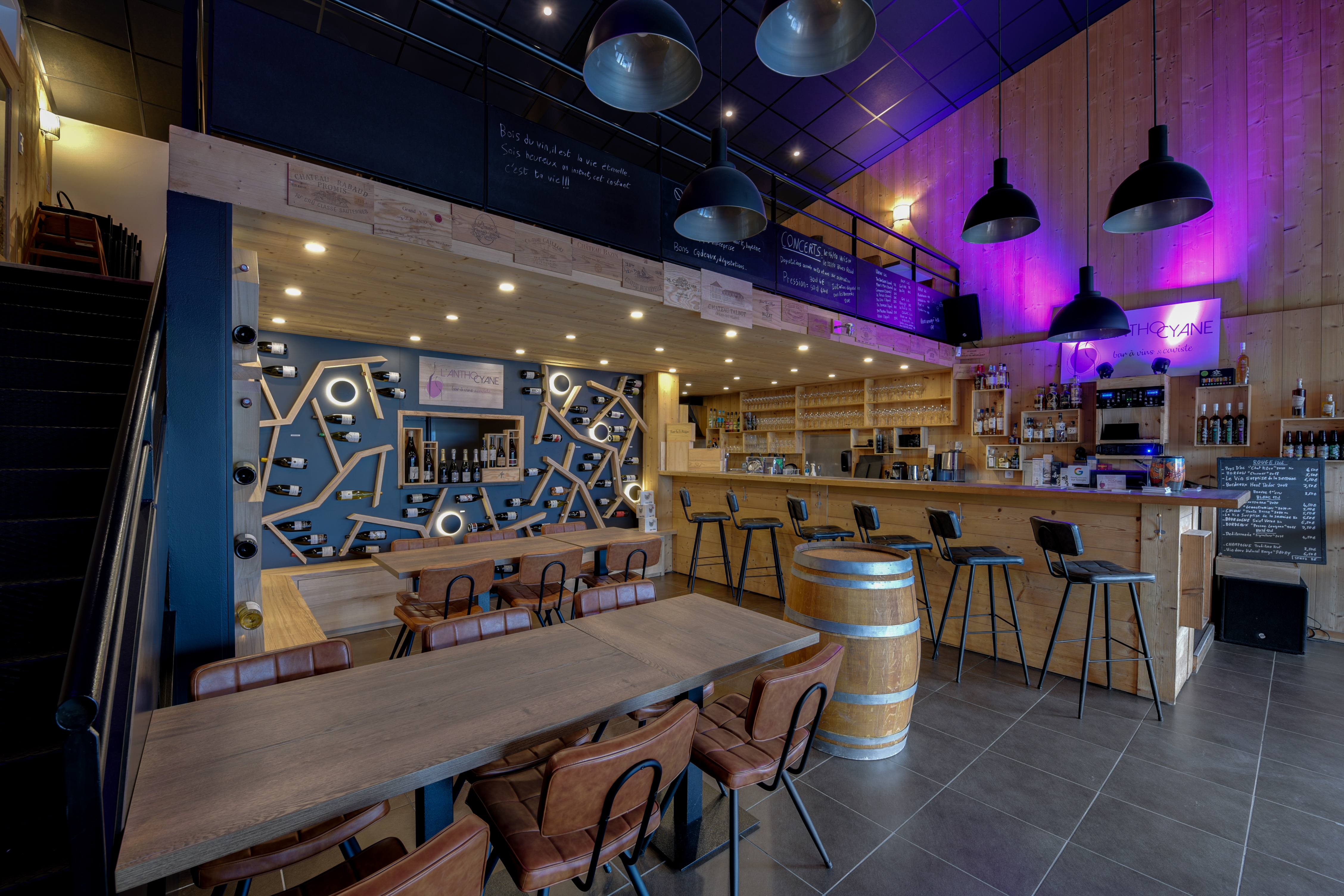 L'Anthocyane dispose d'une salle, d'une mezzanine ainsi qu'une terrasse abrité.