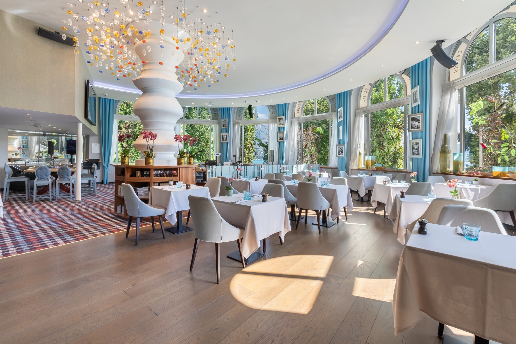Que vous soyez joueur ou non, venez découvrir la carte à l’influence italienne du restaurant Le Riva et son ambiance élégante et moderne face au lac !