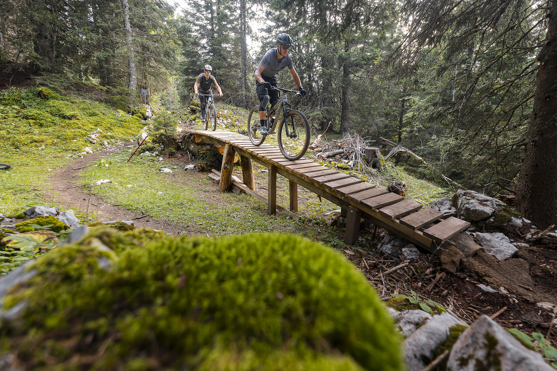 Piste joueuse, avec de nombreux hoops, accessible à tous les niveaux. Y compris accessibles aux trottinettes tout terrain louées par la station.