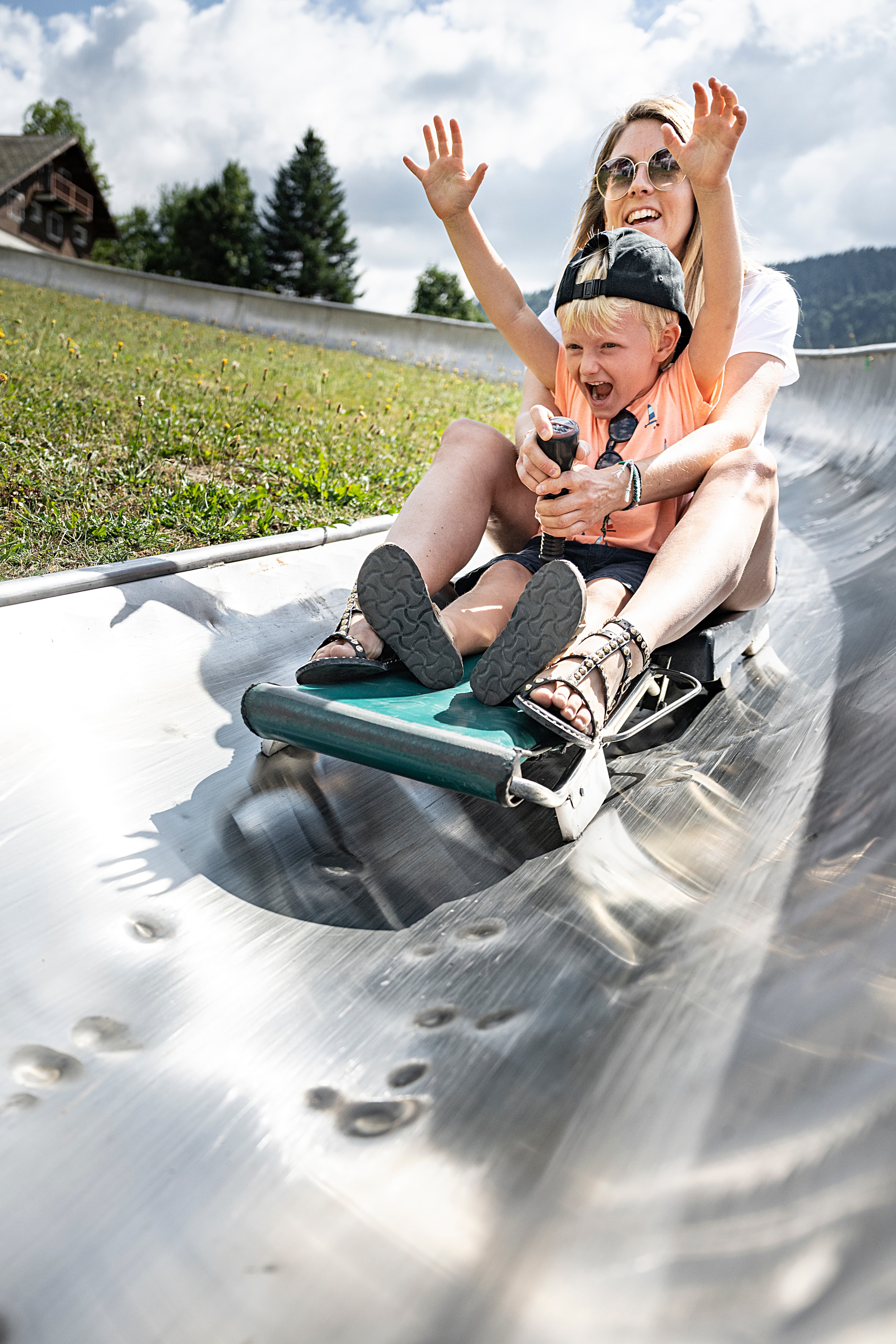 Piste de luge gratuite et aménagée. Balisée et sécurisée. Pour les enfants de plus de 6 ans.