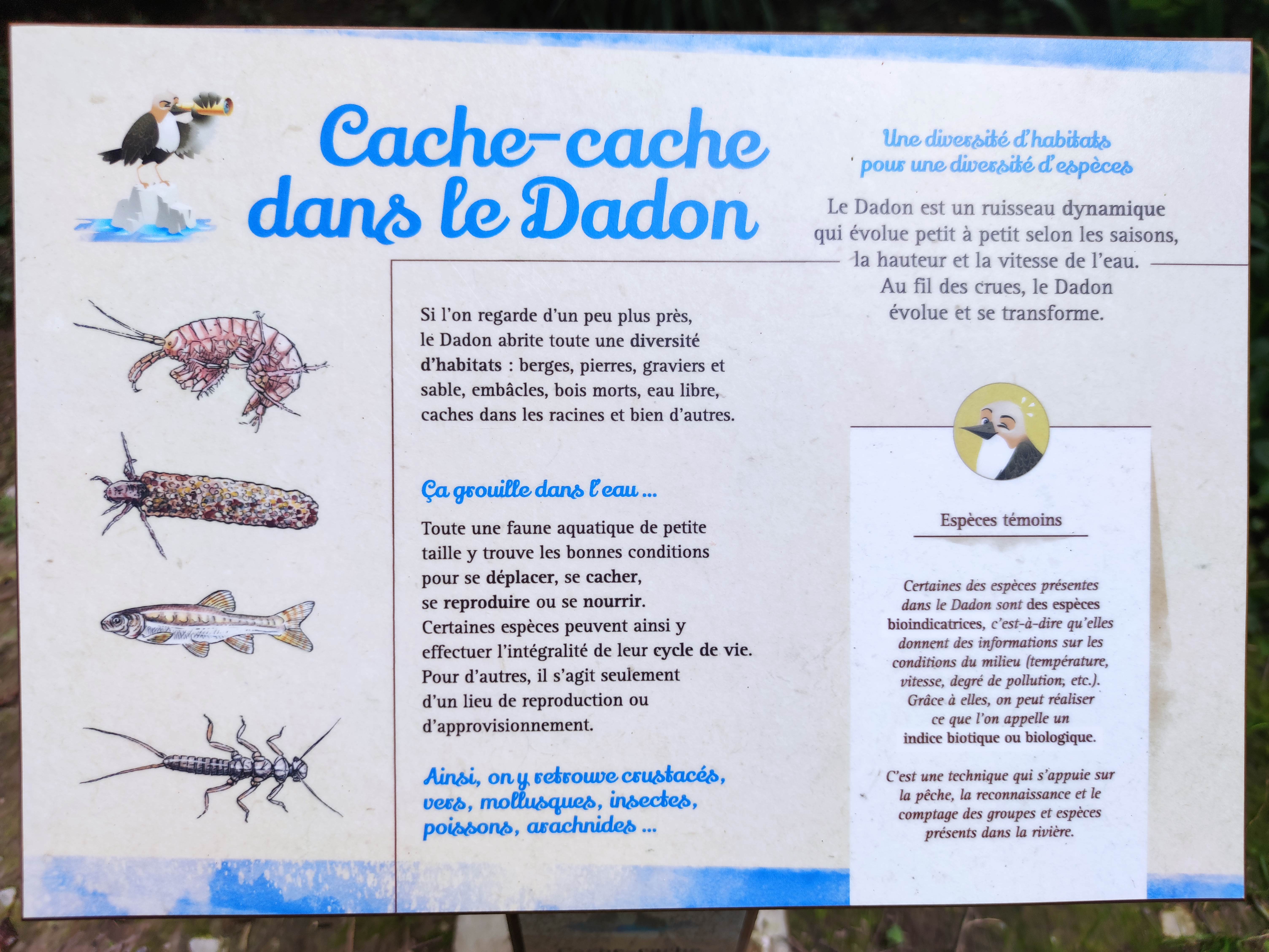 Des panneaux ludiques ponctueront votre parcours. Fermé en cas de fortes pluies, inondations ou crues.