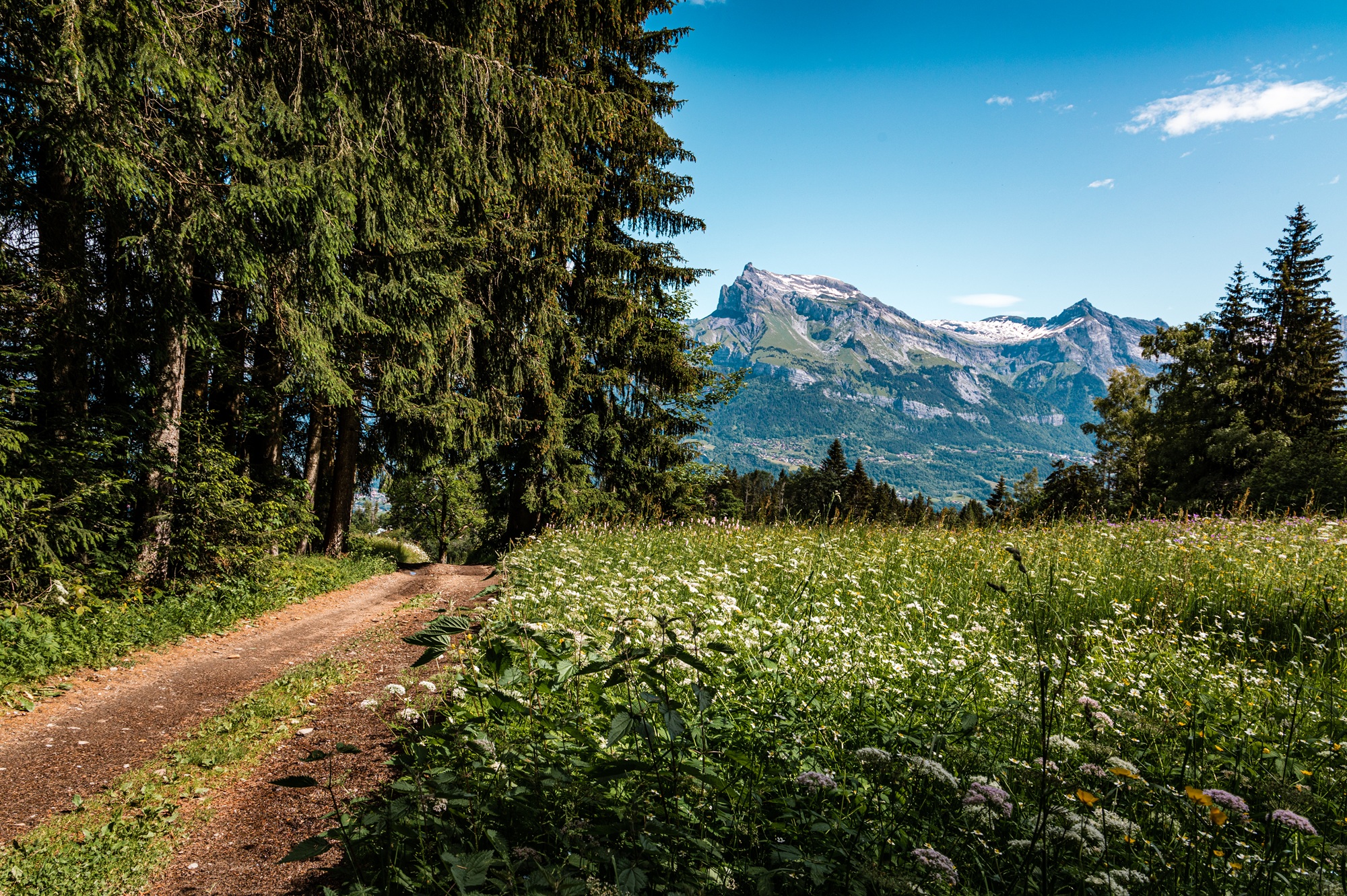 Randonnée au départ du parking de Cuchet. Une belle balade accessible en famille, à travers forêt, alpage avec une magnifique vue sur toute la chaîne du Mont-Blanc.