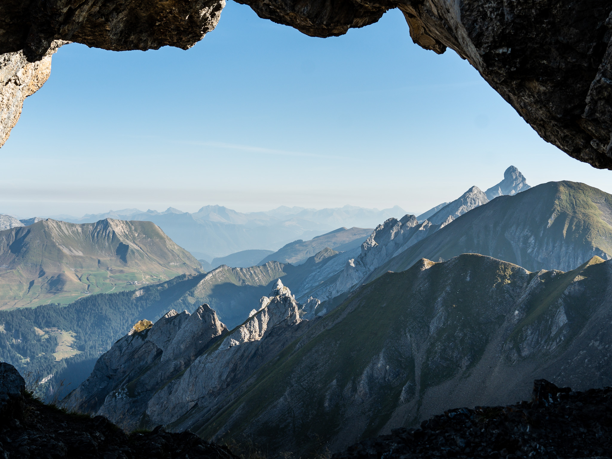 Le Trou de la Mouche agit comme une fenêtre ouverte sur les paysages environnants. En franchissant cette brèche dans la roche, le regard bascule d’une combe à l’autre, révélant toute la beauté brute du massif des Bornes-Aravis. L’ambiance y est à la fois minérale et vivante, entre lapiaz, falaises calcaires et pentes herbeuses, dans un site préservé classé Natura 2000.