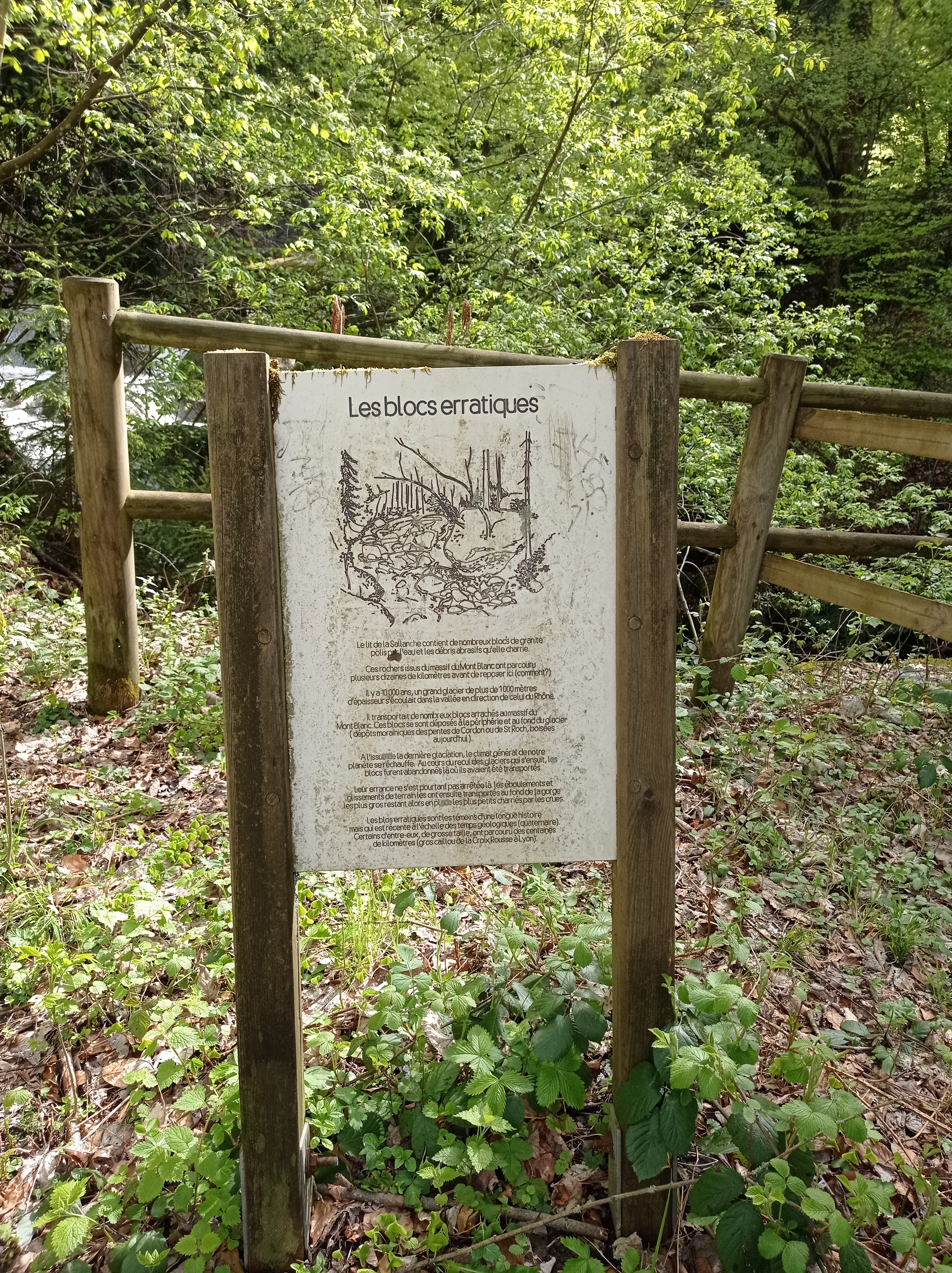 - sentier pédestre : de la chapelle de l'Immaculée à la grotte mariale de Lévaud panneau sur les blocs erratiques Crédit photo : Véronique Lorenzi
