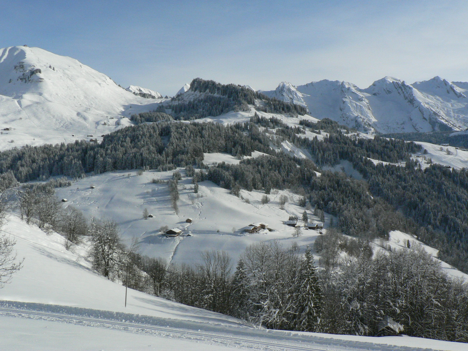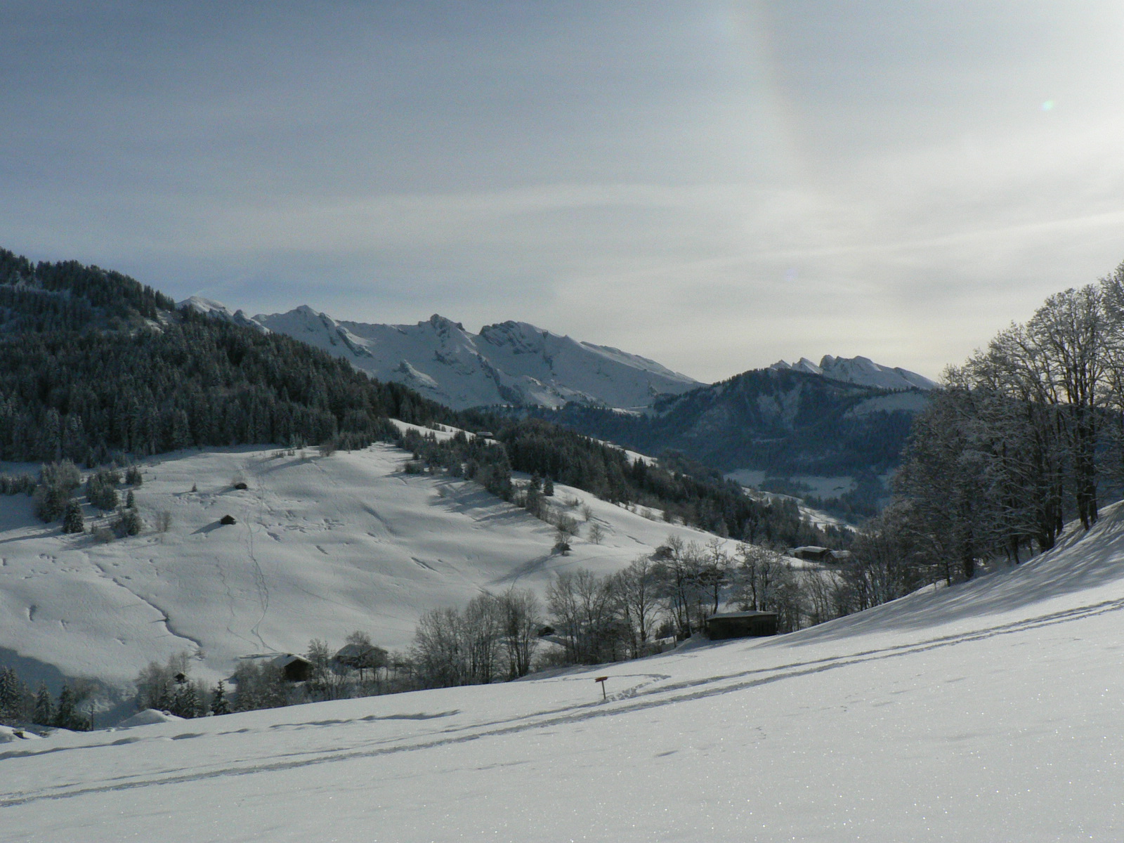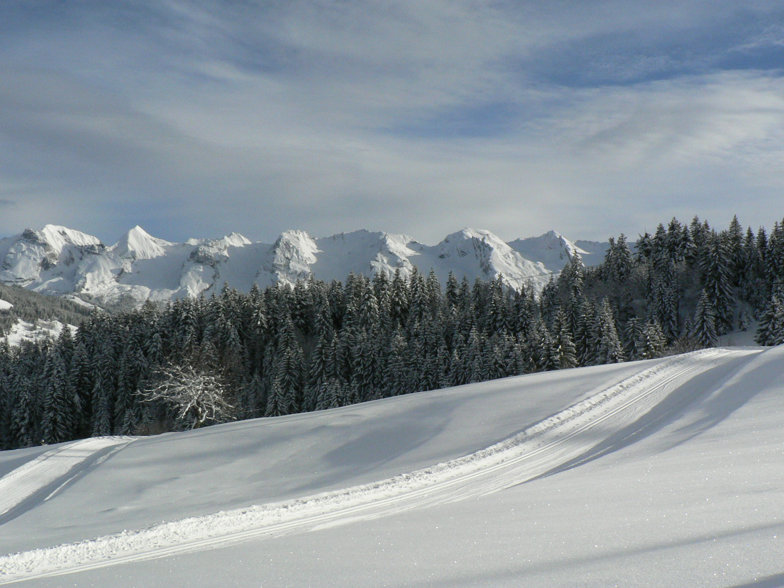 Magnifique boucle en versant sud, au pied du Roc des Tours et du Roc de Charmieux, face au domaine skiable alpin et la chaîne des Aravis. Praticable sans raquettes à neige.