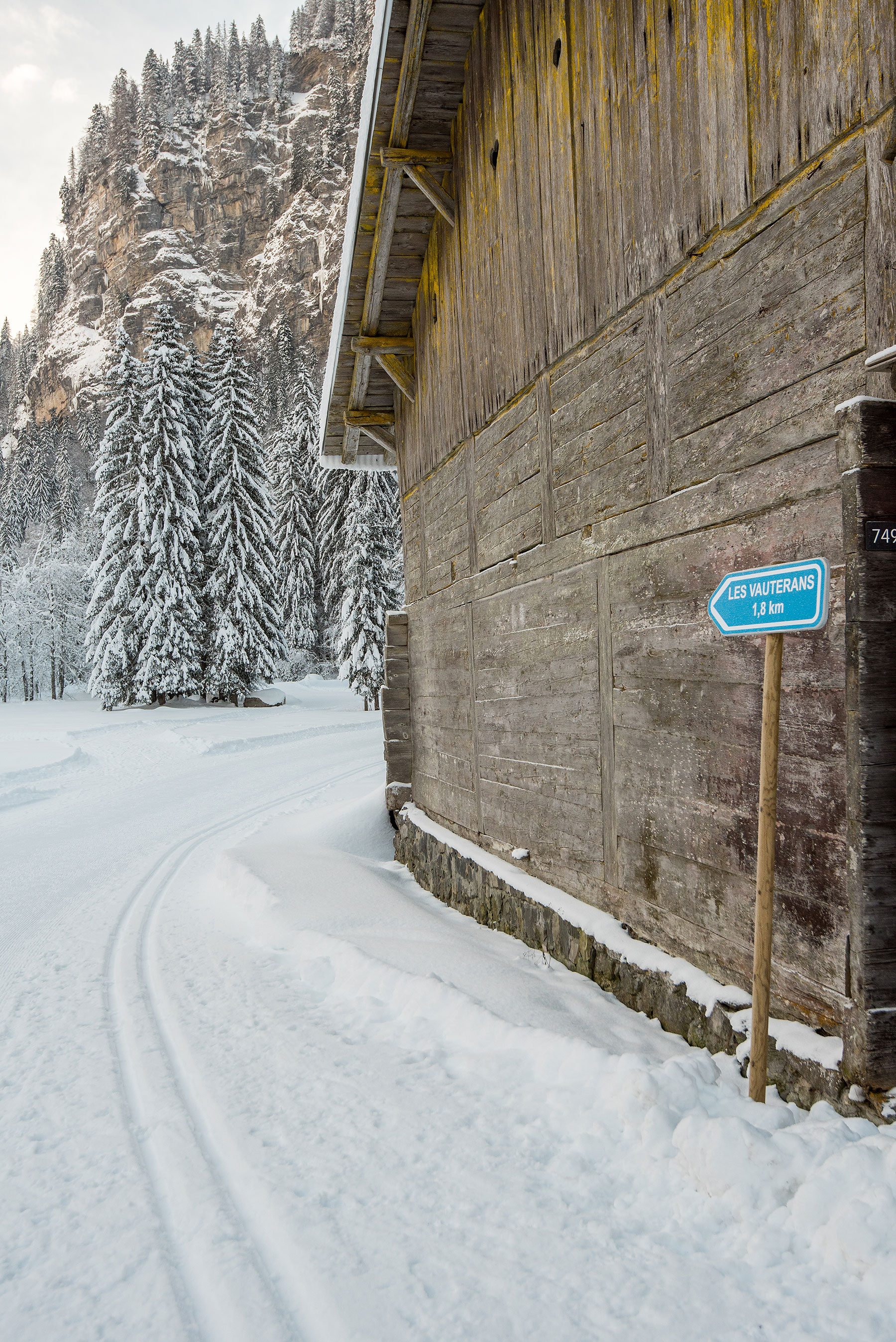 - Le Lac de Montriond jusqu'à Ardent Ski de fond au milieu des vieux chalets des Albertans Crédit photo : Yvan Tisseyre / OT Vallée d'Aulps