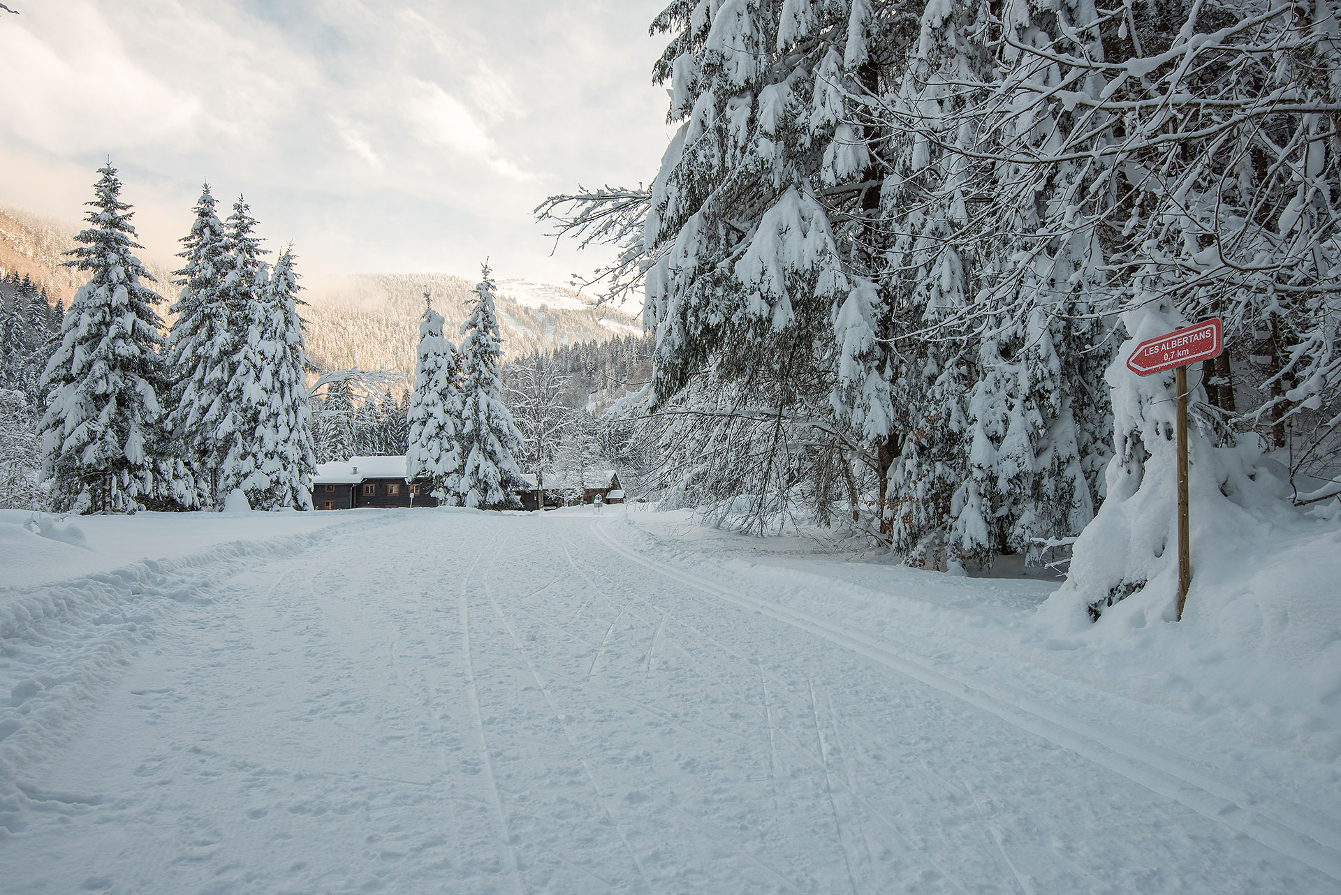 - pour les raquettes, empruntez le sentier en sous-bois (à gauche juste après l’hôtel) qui longe le torrent jusqu'aux Albertans.