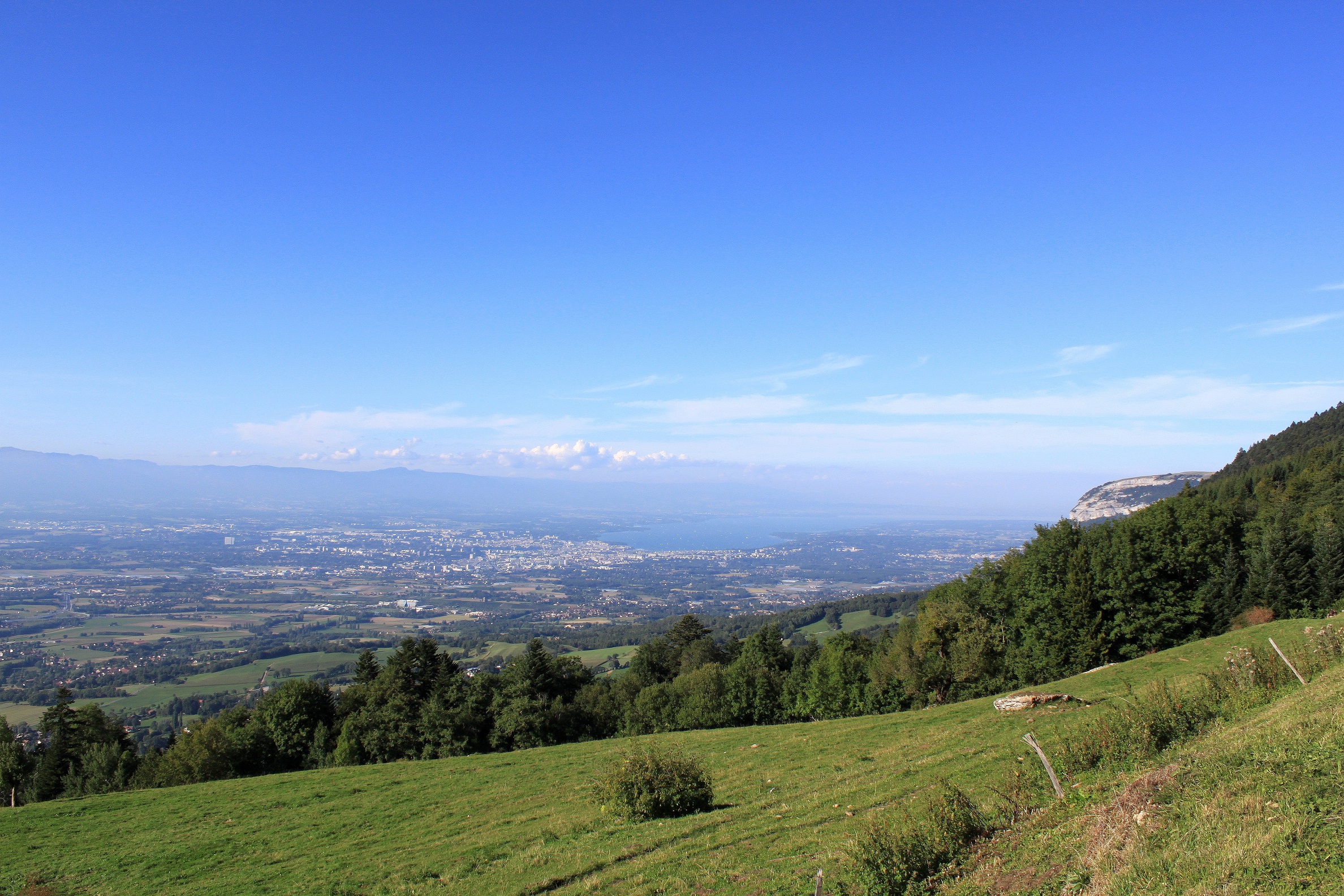 Le sommet du Salève se trouve au Grand Piton, à 1379 mètres, où ce site orné d’une tour offre aux promeneurs un panorama somptueux sur Genève, le lac Léman et le Jura.