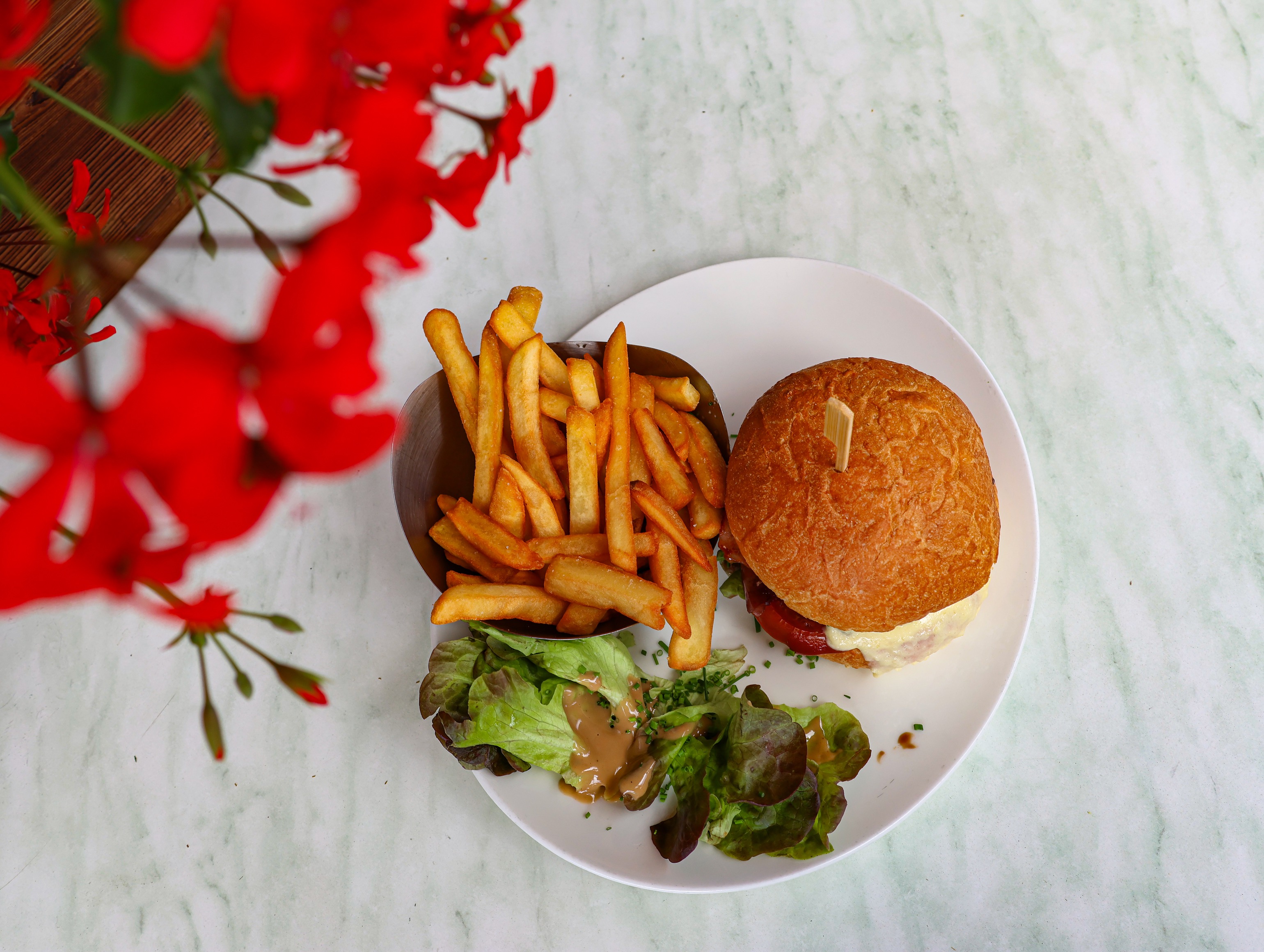 L’équipe dynamique et souriante vous servira dès le petit déjeuner des plats travaillés avec des produits venant de la région.