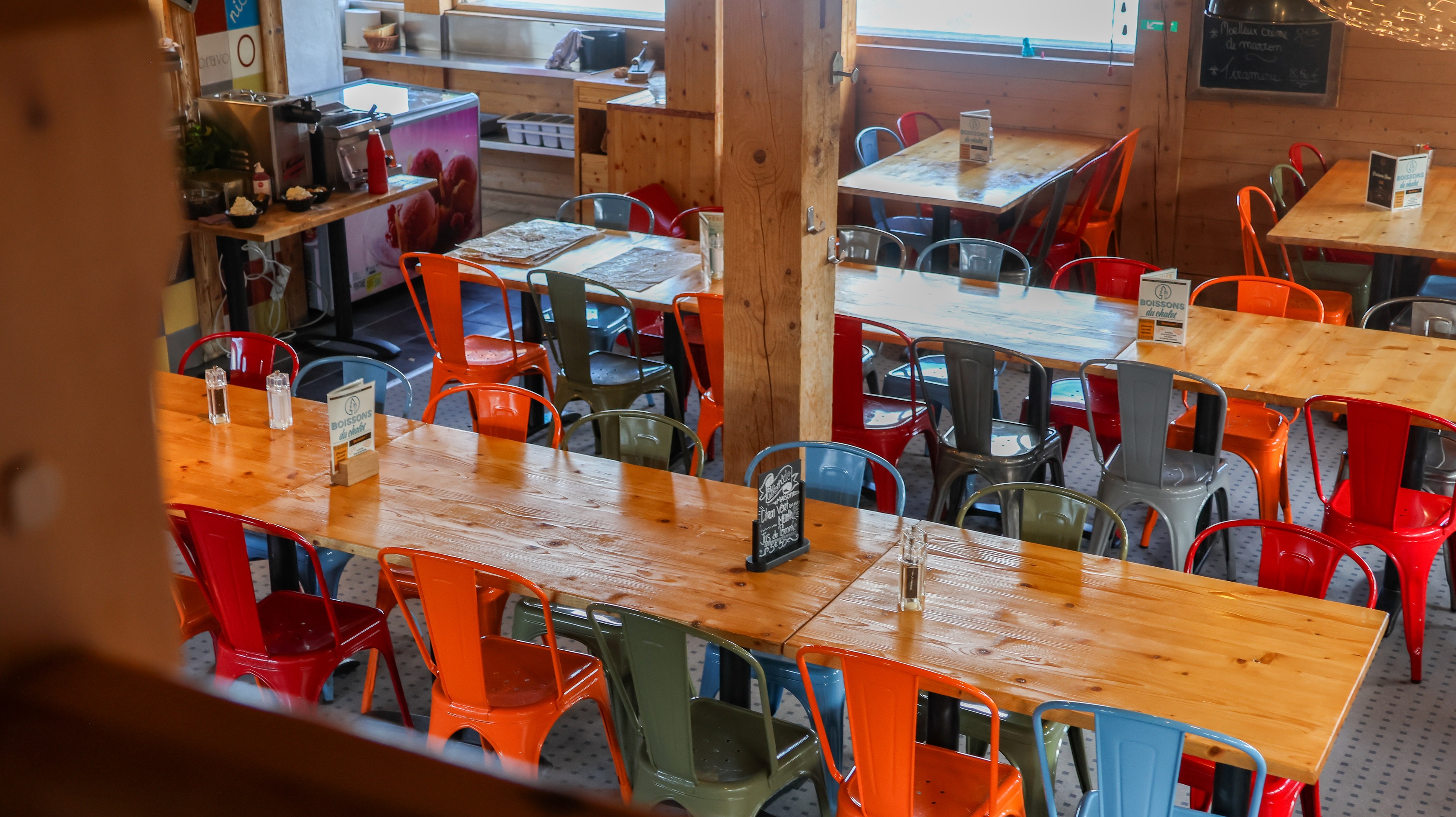 L'hiver, venez vous réchauffer autour du poêle ou de la cheminée à l’étage avec l’excellent chocolat chaud viennois dans un cadre traditionnel d’un chalet à la décoration résolument moderne !