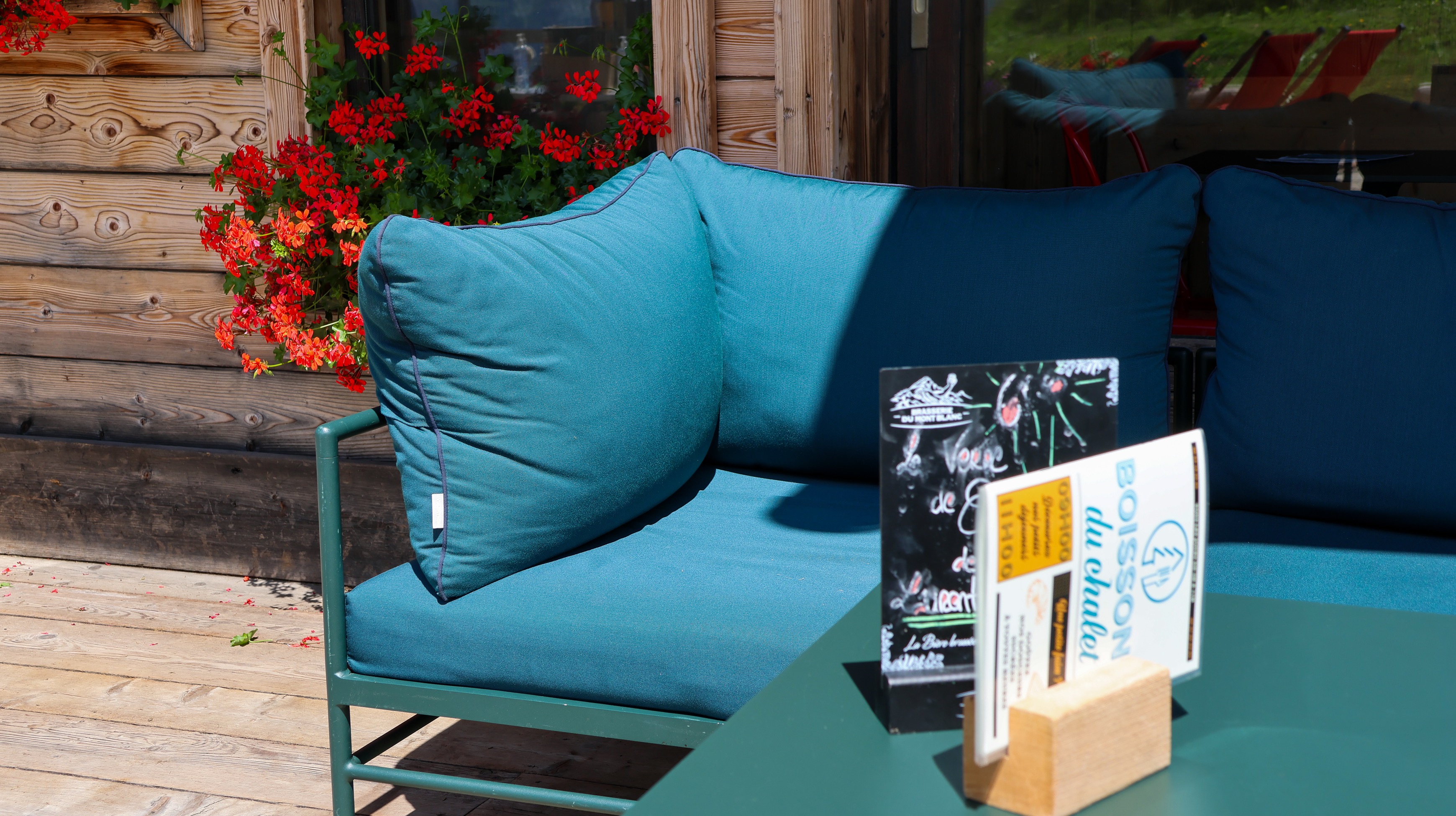 La Terrasse ensoleillée qui surplombe la station des Esserts où l’on pourra profiter des cocktails dans les transats !