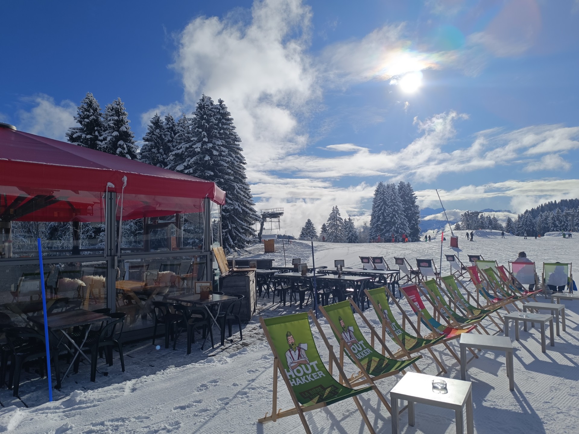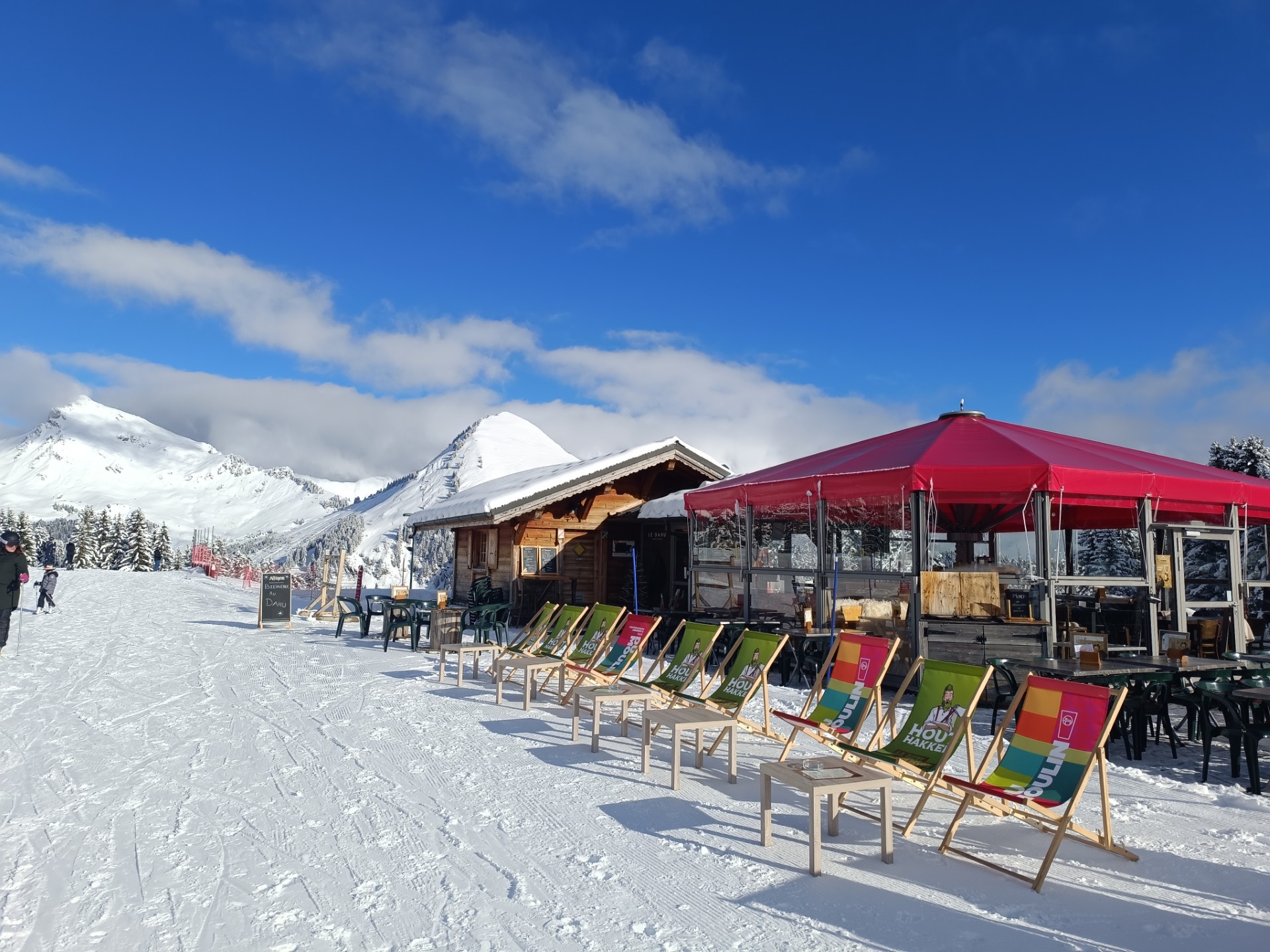 L'hiver situé au pied des pistes : self service le midi, restauration traditionnelle et spécialités savoyardes le soir. L'été : restauration traditionnelle et spécialités savoyardes.