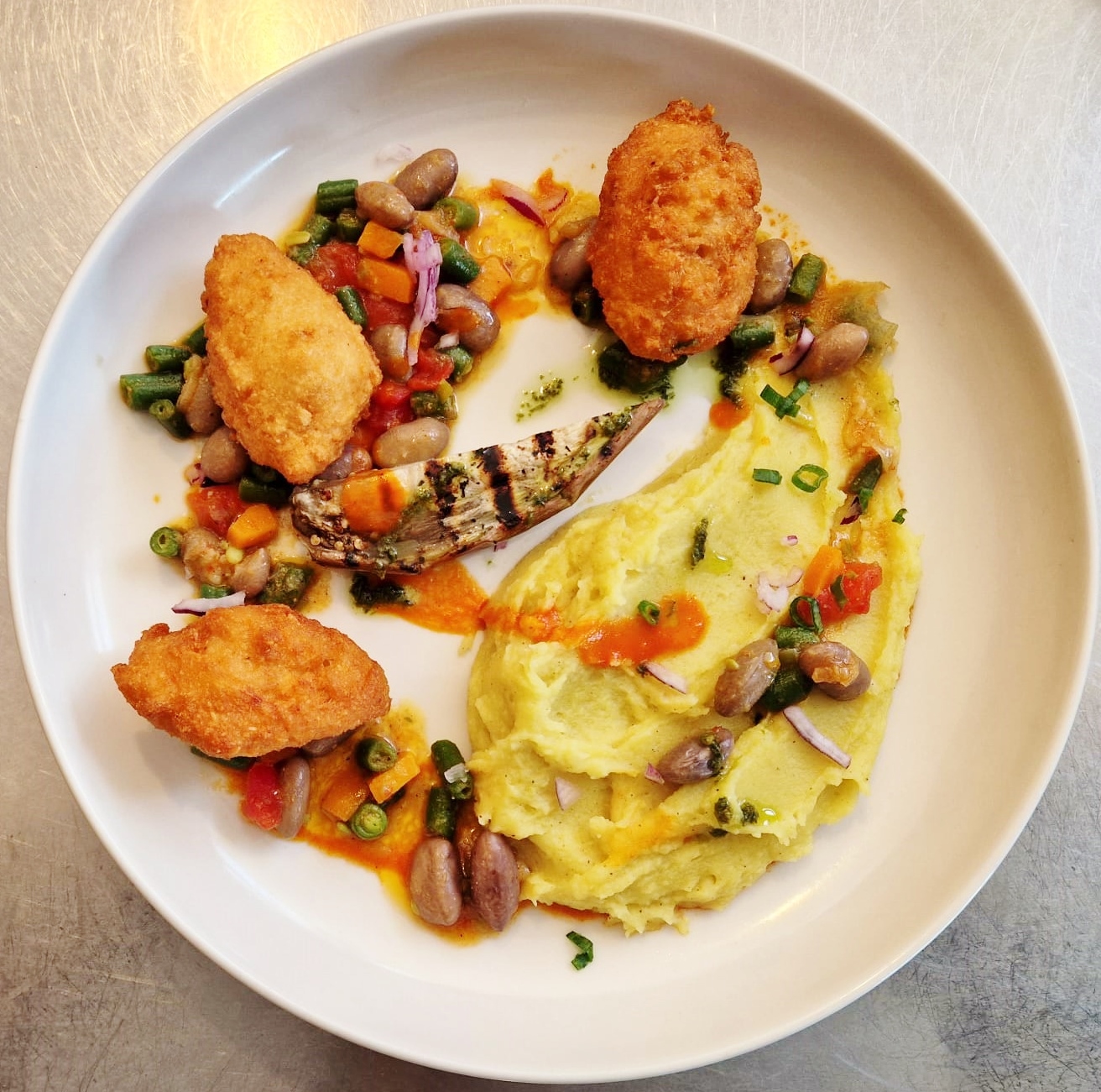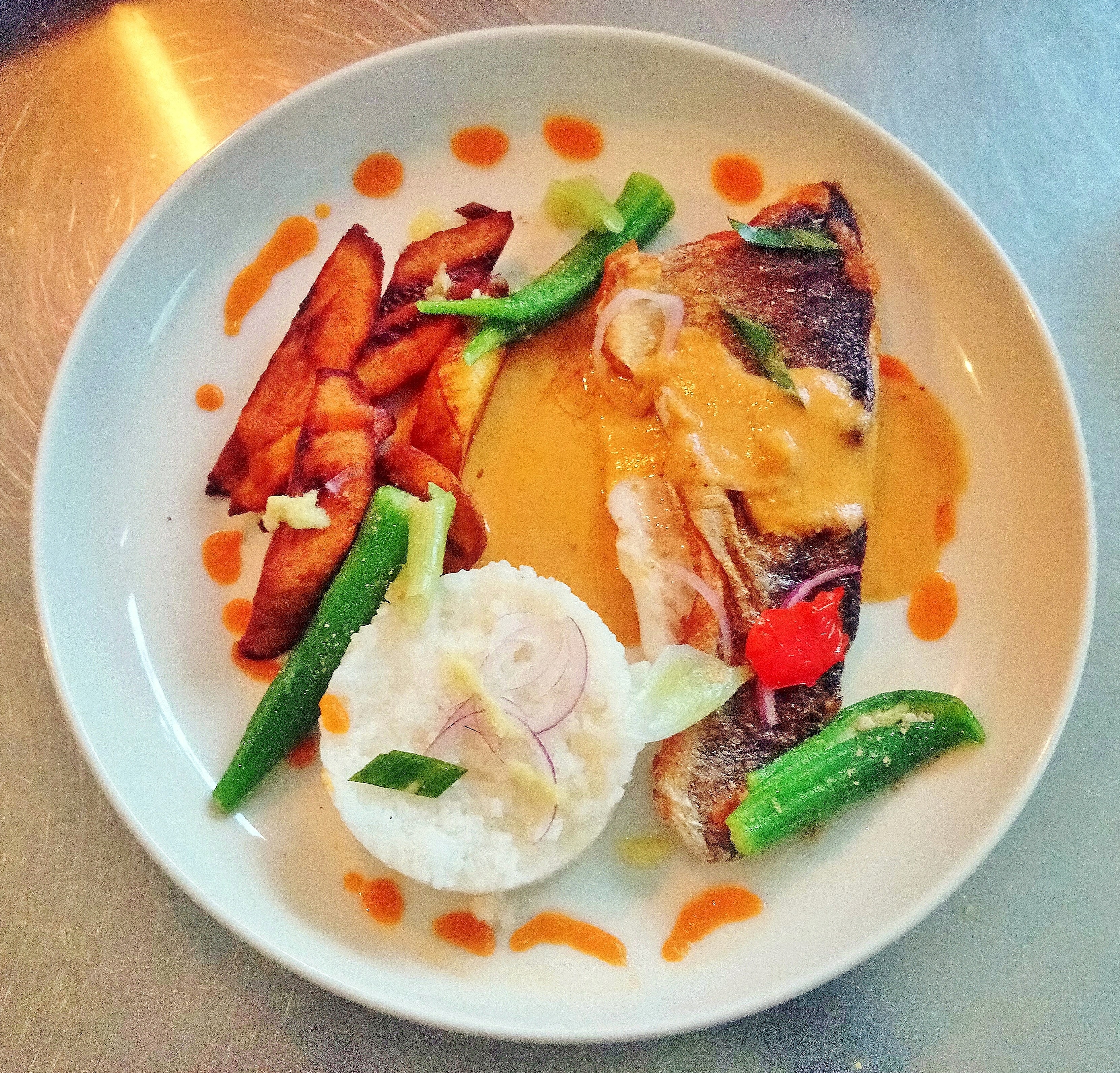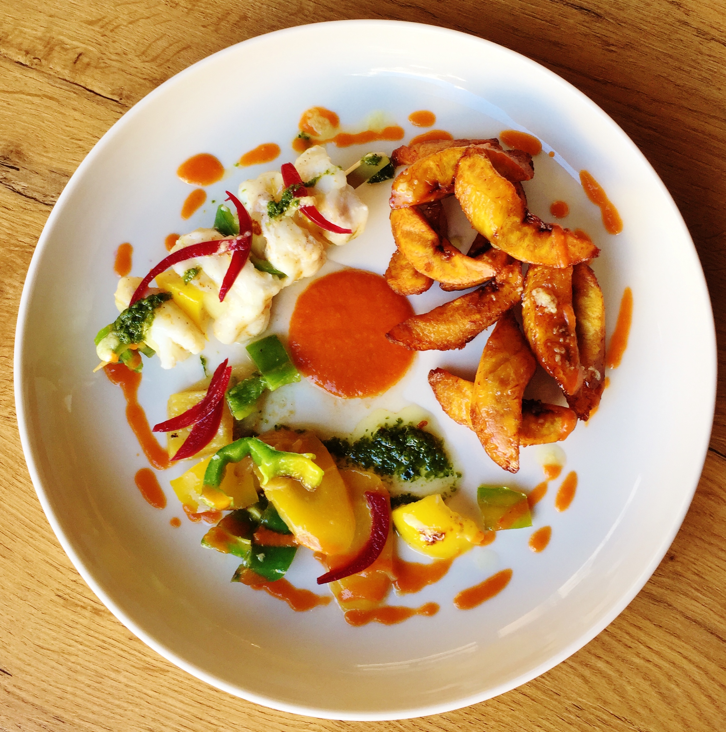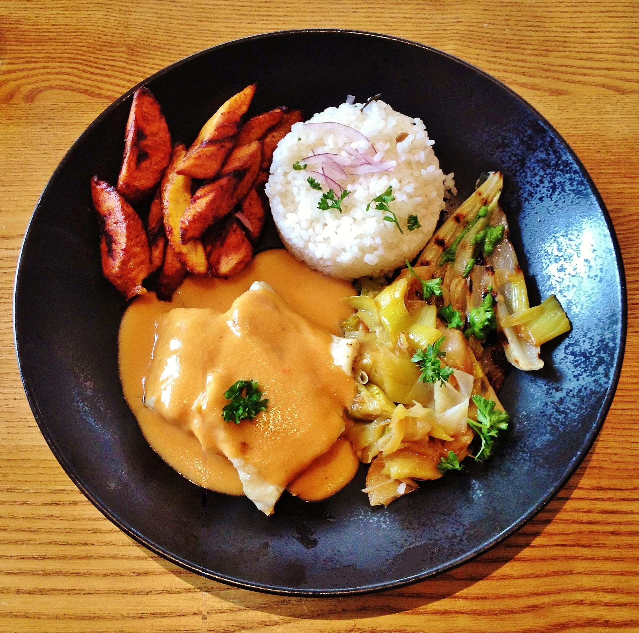 Les midis et soirs : invitation au voyage avec notre cuisine “fusion” des produits d’ici et des saveurs camerounaises (poulet,DG, plats sauce cacahuètes ou sauce gombo...).