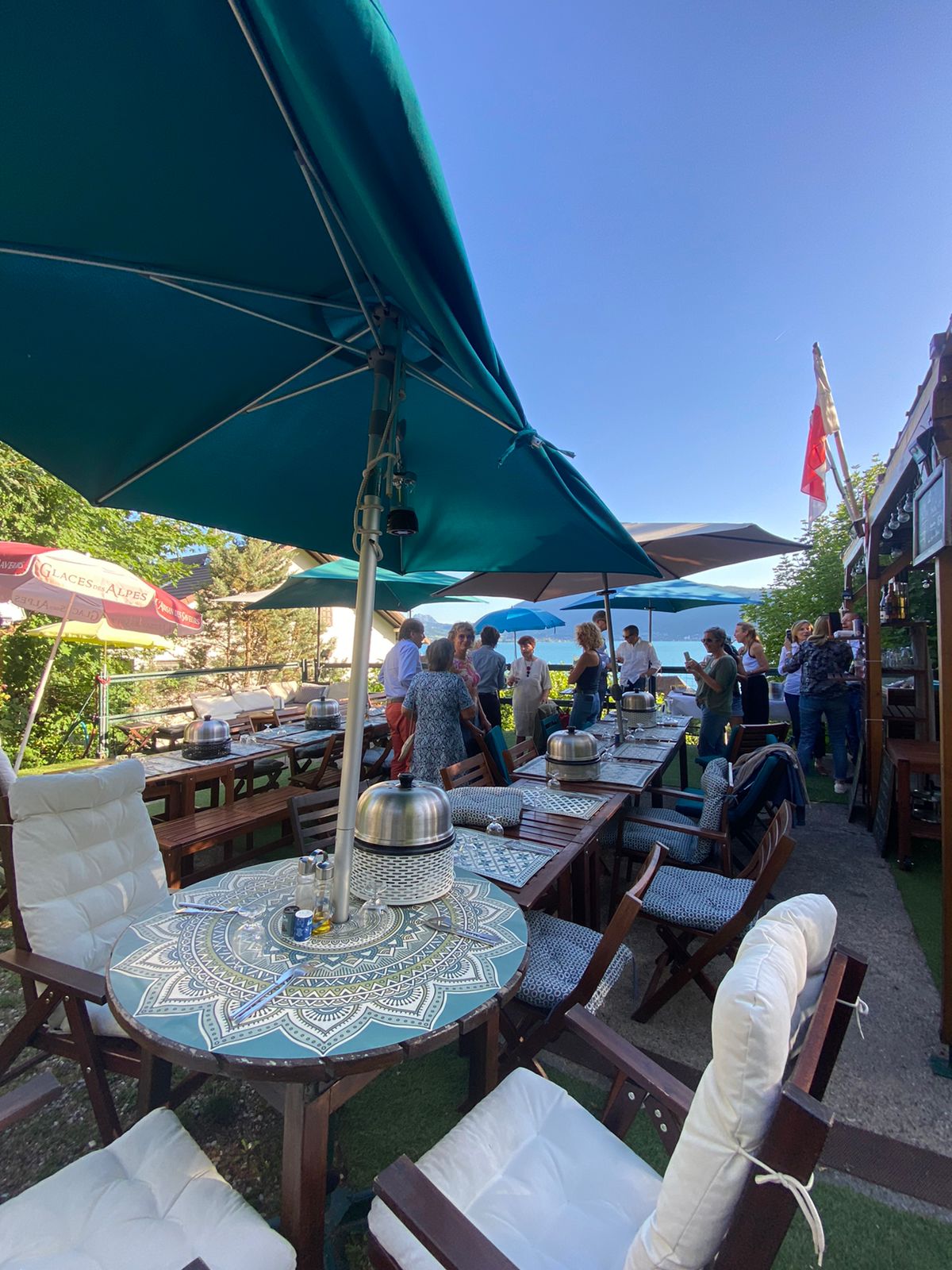 Vous souhaitez organisez un repas, un apéritif, une fête, un gouter...en famille, entre amis, entre collègues, à un tarif raisonnable ? Nathalie vous ouvre les portes du jardin de sa maison d'enfance avec sa grande terrasse surplombant le lac ! => Consultez La Page Privatisation de notre Site internet.