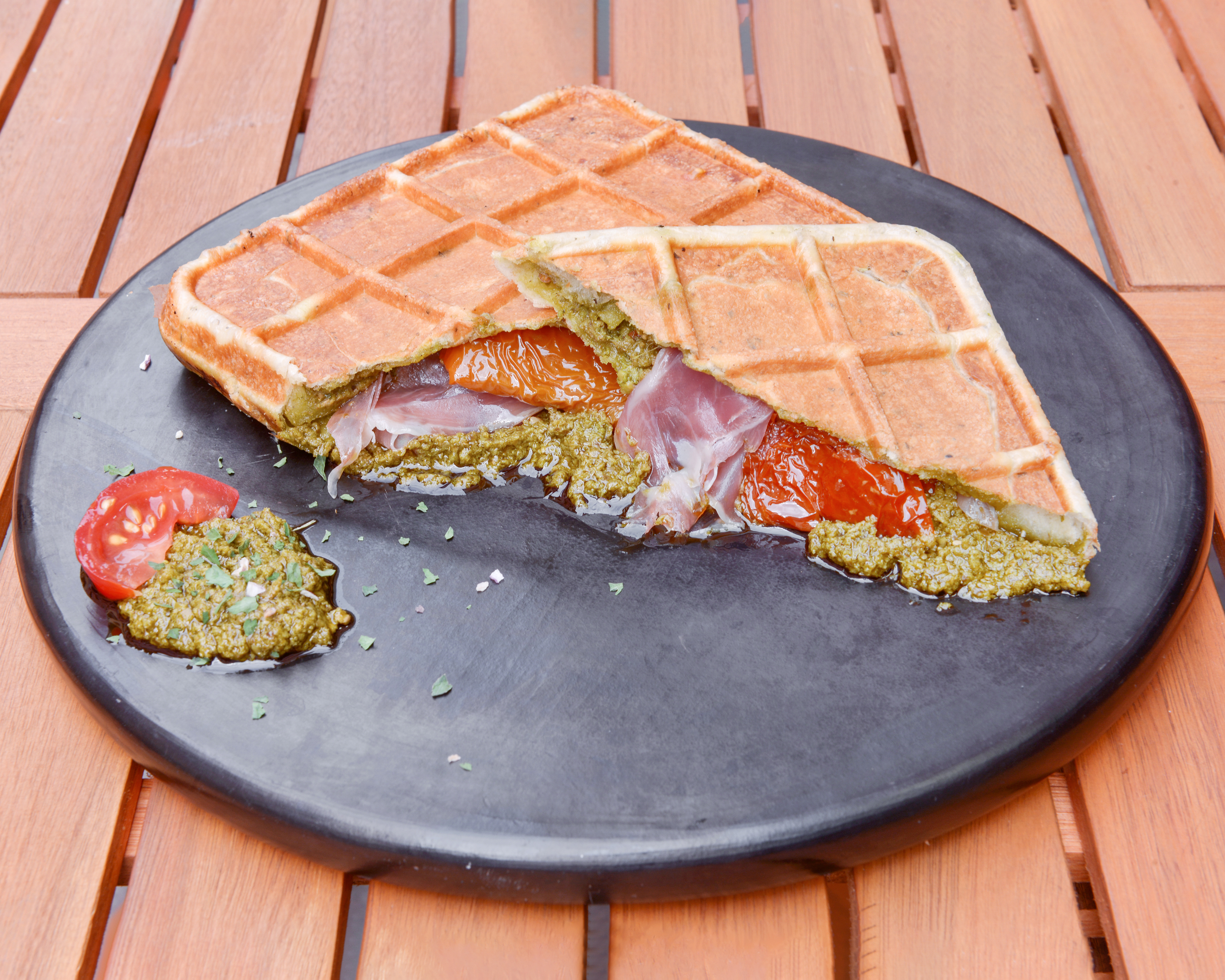 Nous proposons des gaufres salées pour tous les goûts. Notre pâte aux herbes de Provence est garnie par nos soins, Jambon/fromage, Norvégienne, Reblochon, ...