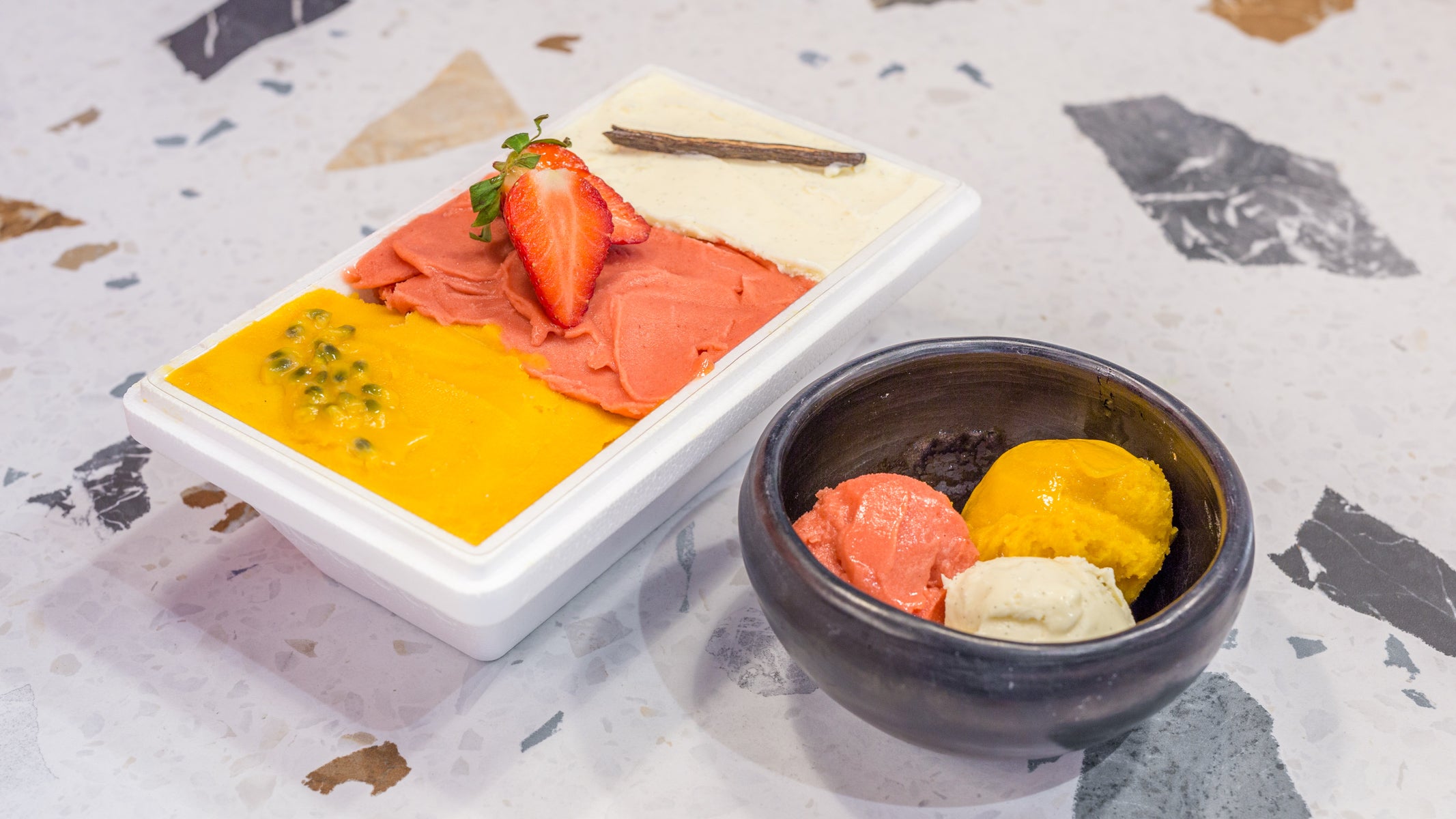 Nos glaces sont artisanales et élaborées sans colorant et sans arôme artificiel. Notre glace à la Vanille a été élue 3ème meilleure glace Vanille de France par le Gault & Millau.