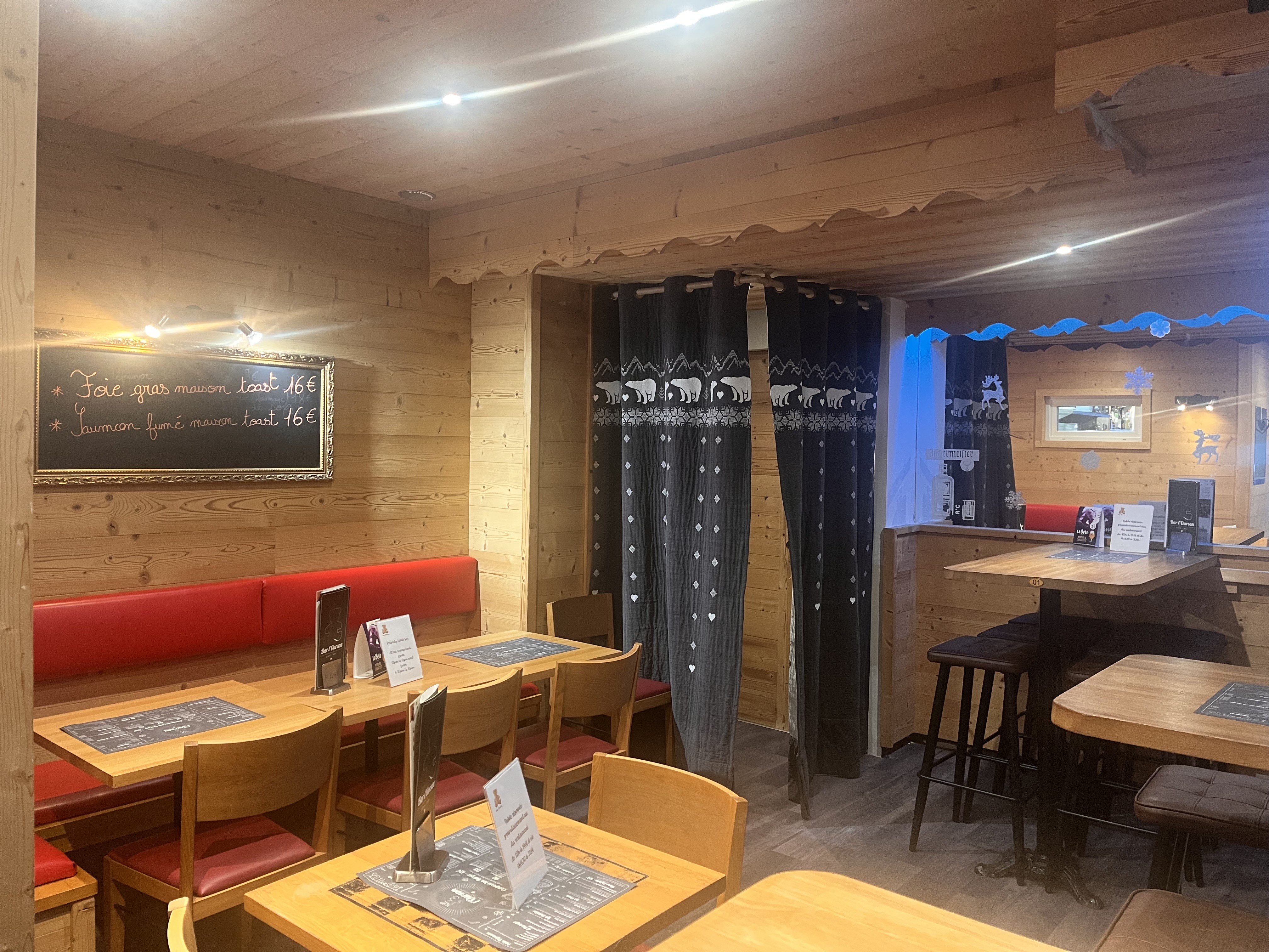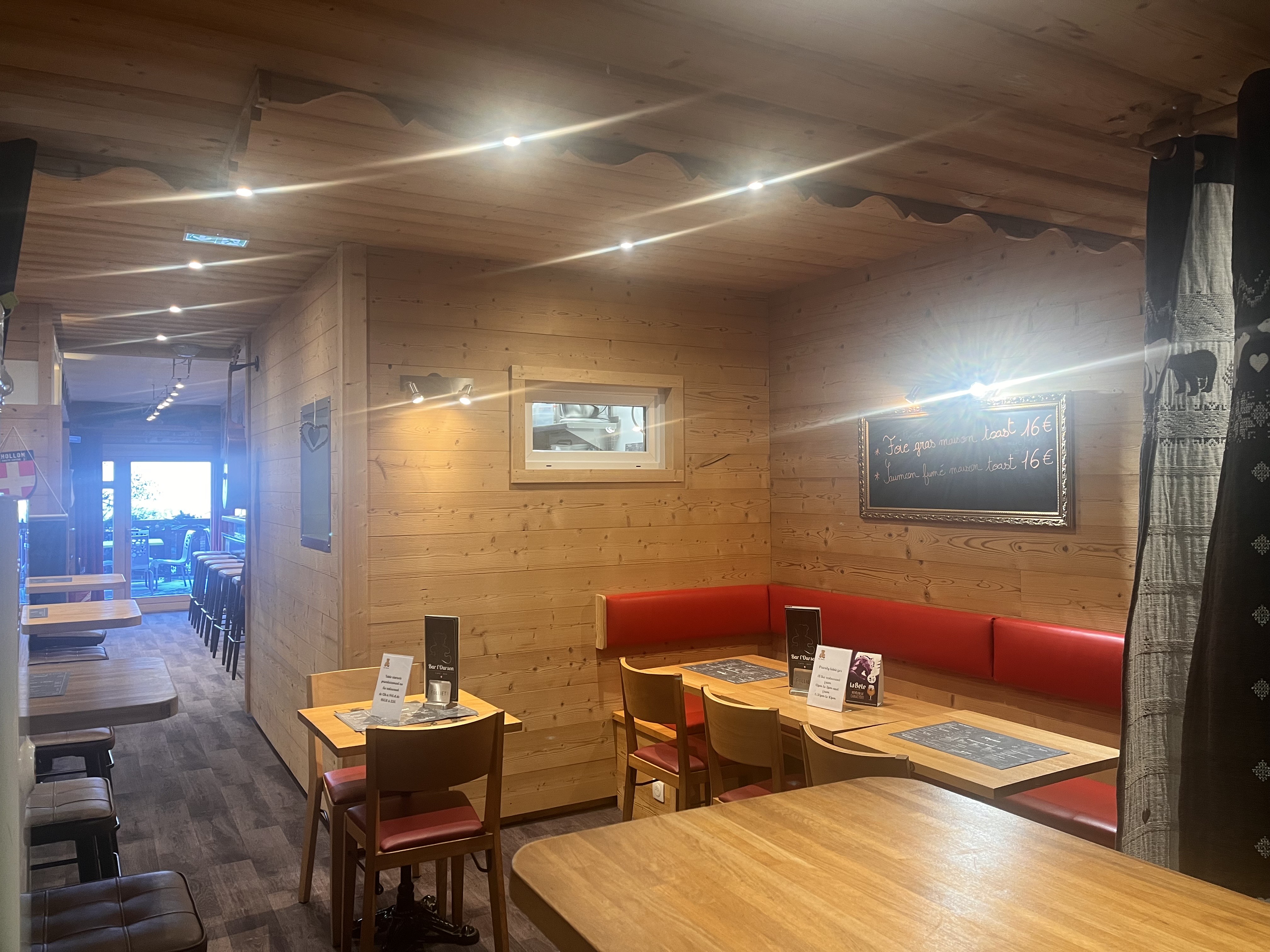 Ambiance montagnarde et conviviale : Le Bar L’Ourson joue parfaitement la carte de la station : bois, convivialité, vue sur les alpages, terrasse ensoleillée.