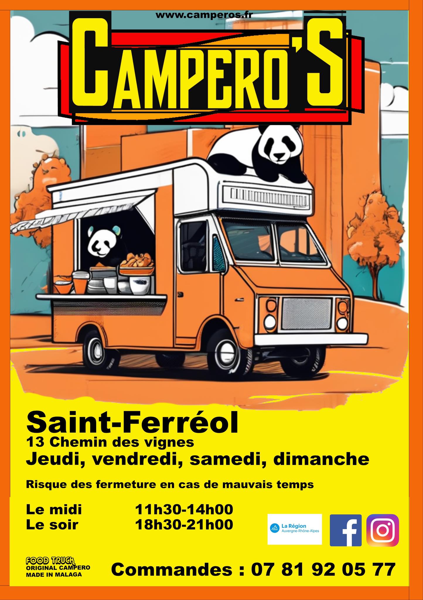 La carte se décline autour de plusieurs recettes de camperos : poulet, bacon, boeuf, thon, chorizo, shawarma ainsi qu'une option végétale, pouvant être adaptée en version végan. Chaque recette est accompagnée de sauces maison ou typiques (ali-oli, brave, biggie, barbecue...), permettant à chacun de personnaliser son plat?