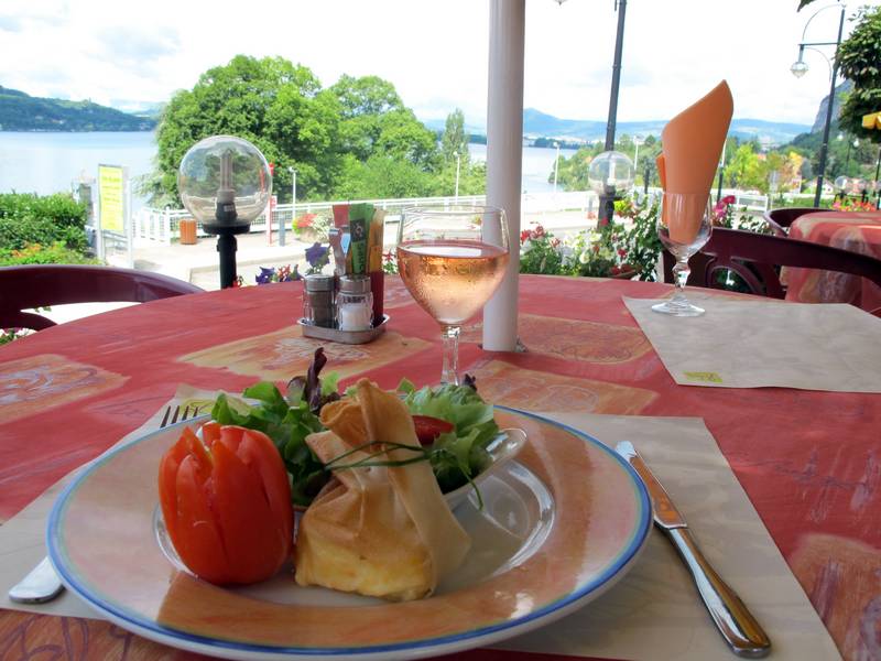 Terrasse ombragée avec vue panoramique sur le lac d'Annecy. Hôtel de caractère et accueil familial pour un séjour à prix compétitif dans un site enchanteur.