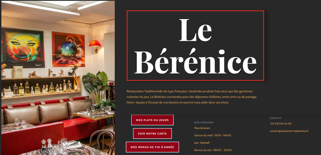Le Bérénice à Annemasse vous accueille dans une ambiance chaleureuse et soignée, avec une cuisine qui met à l’honneur la tradition française et le goût des choses bien faites. Reconnu Maître Restaurateur, l’établissement défend une approche authentique : ici, la cuisine est réalisée sur place, avec une attention constante portée à la qualité, à la régularité et au plaisir de la table.