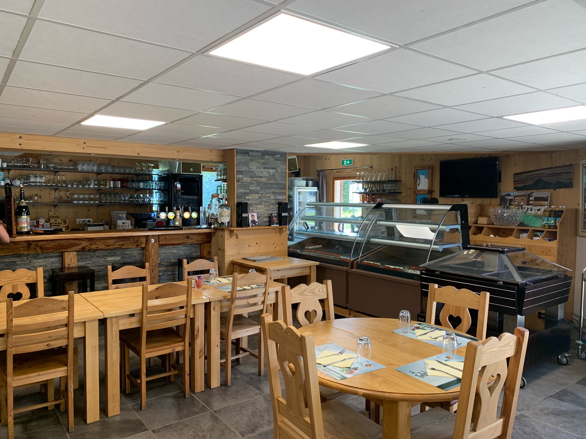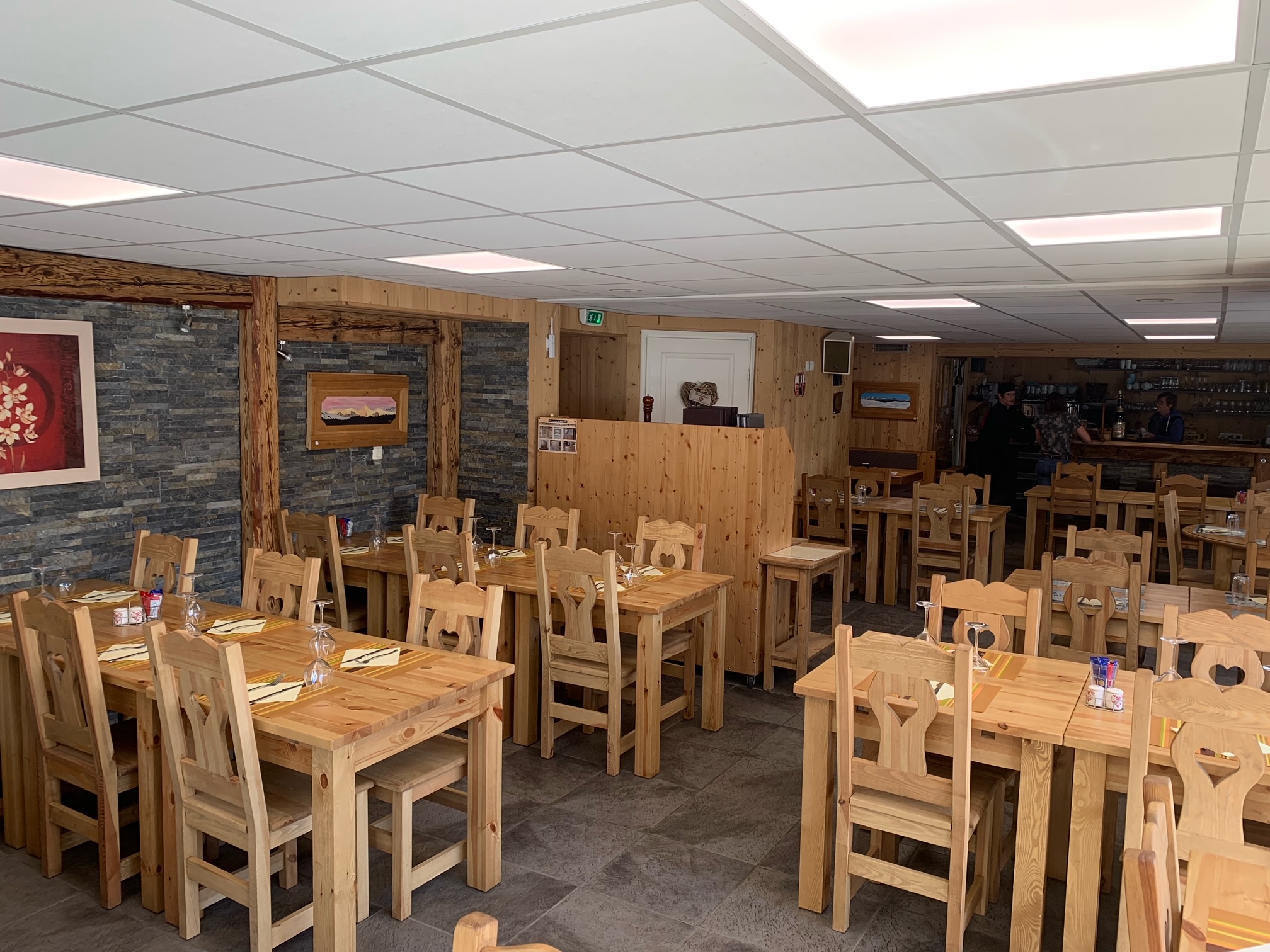 L'hiver situé au pied des pistes : self service le midi, restauration traditionnelle et spécialités savoyardes le soir. L'été : restauration traditionnelle et spécialités savoyardes.