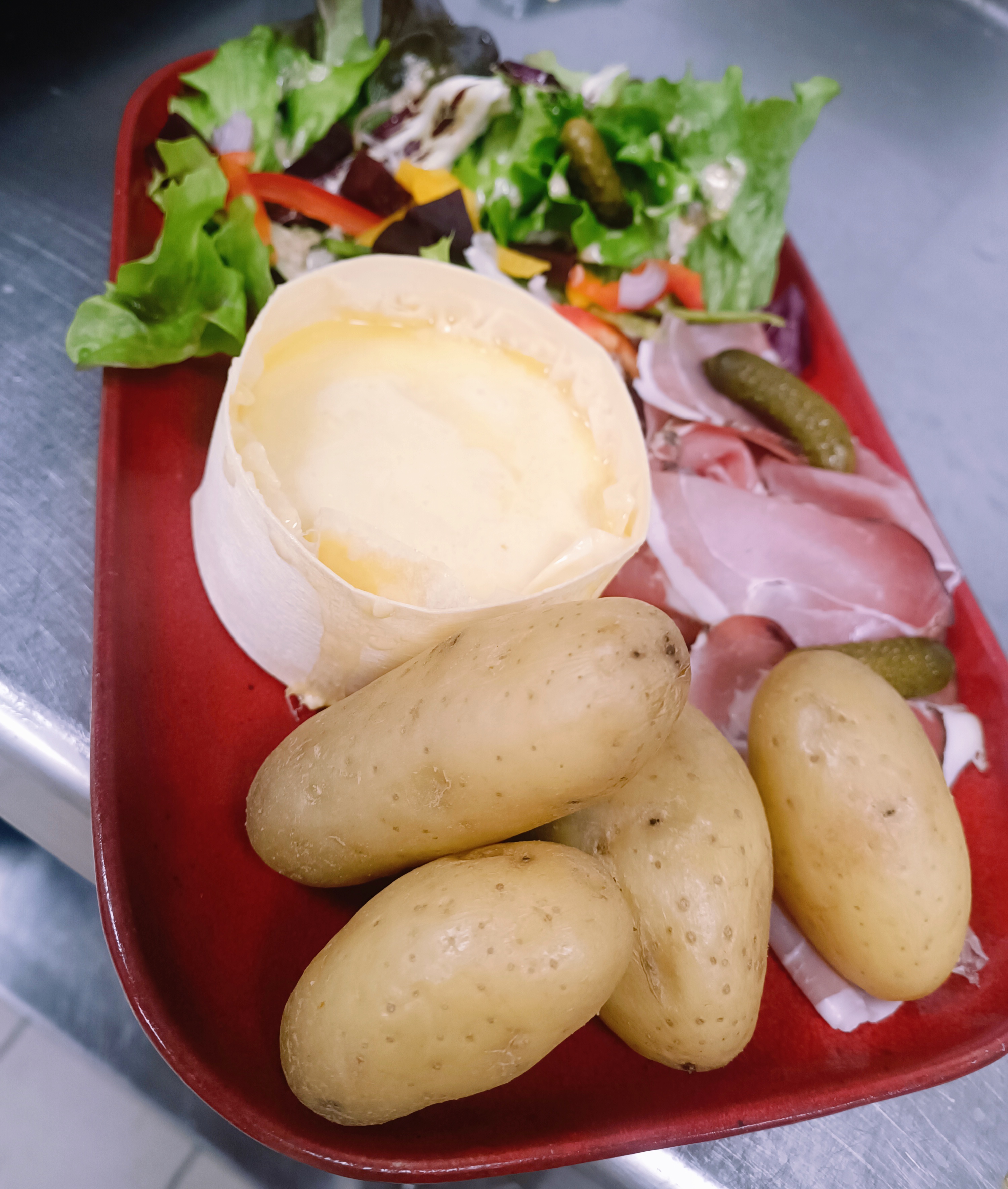 Spécialités locales savoyardes d'hier et d'aujourd'hui et cuisson au feu de bois : tarte à l'ortie, beignets de pommes de terre, farcement, (sur commande), tarte potiron châtaignes, pêches aux épices, pommes aux airelles, fondant chocolat, chasse...
