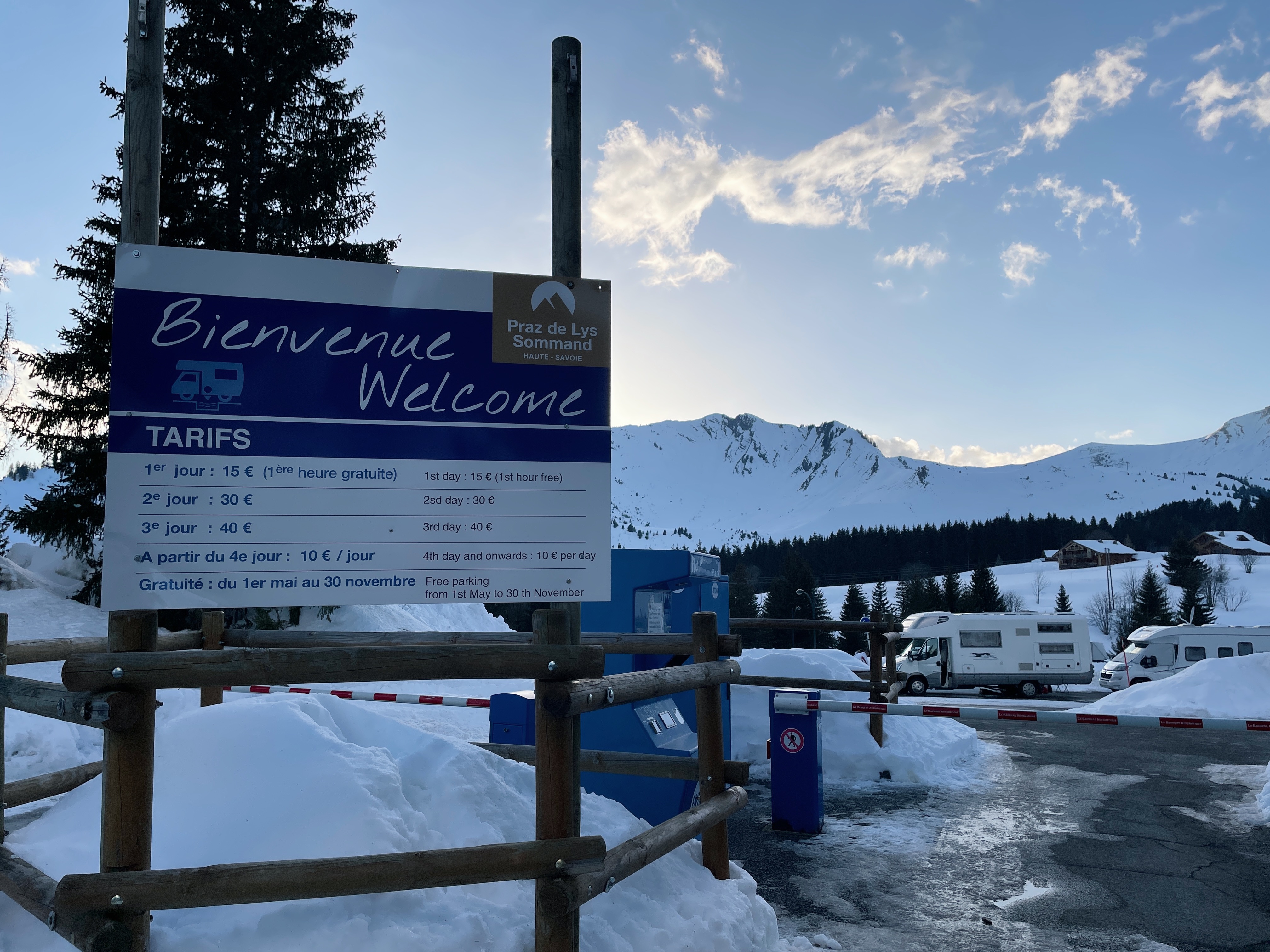 Aire pour camping car à l'entrée de la station du Praz de Lys à «La Savolière».